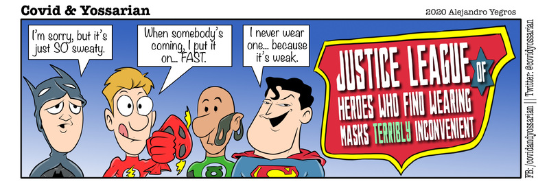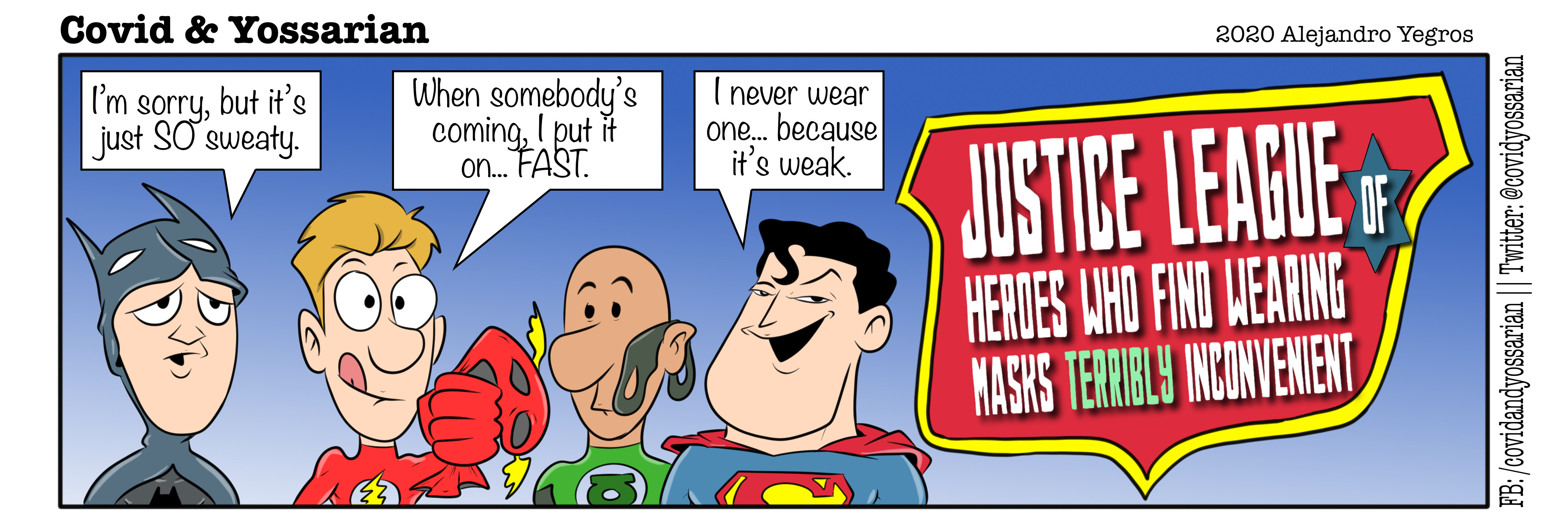 "JUSTICE LEAGUE OF HEROES WHO FIND WEARING MASKS TERRIBLY INCONVENIENT"