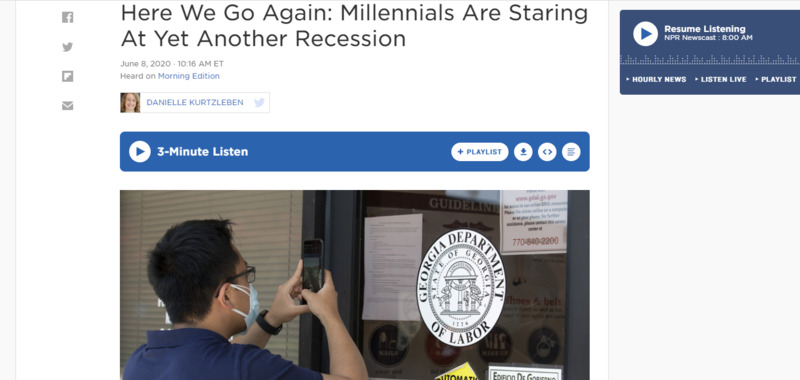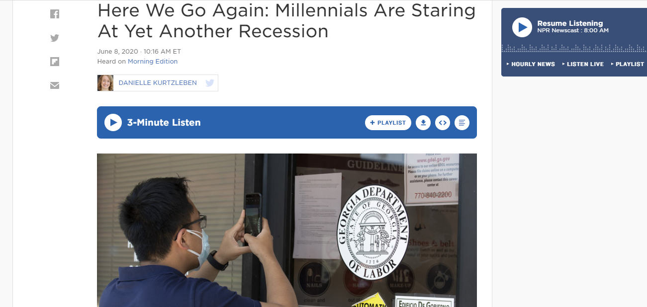 As a Millennial this is a hard pill to swallow. We now know that lifetime wealth for millennial was affected greatly by the 2008 recession. Can we really recover from a second?