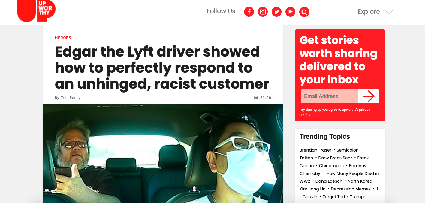 Edgar the Lyft driver showed how to perfectly respond to an unhinged, racist customer