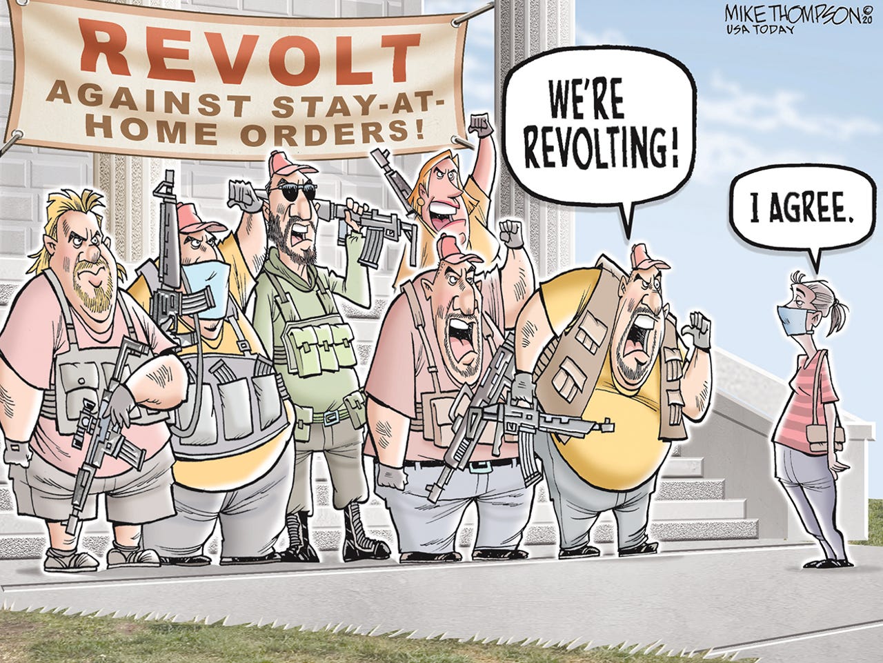 Political Cartoon Masked Protesters Against Stay-at-Home Orders