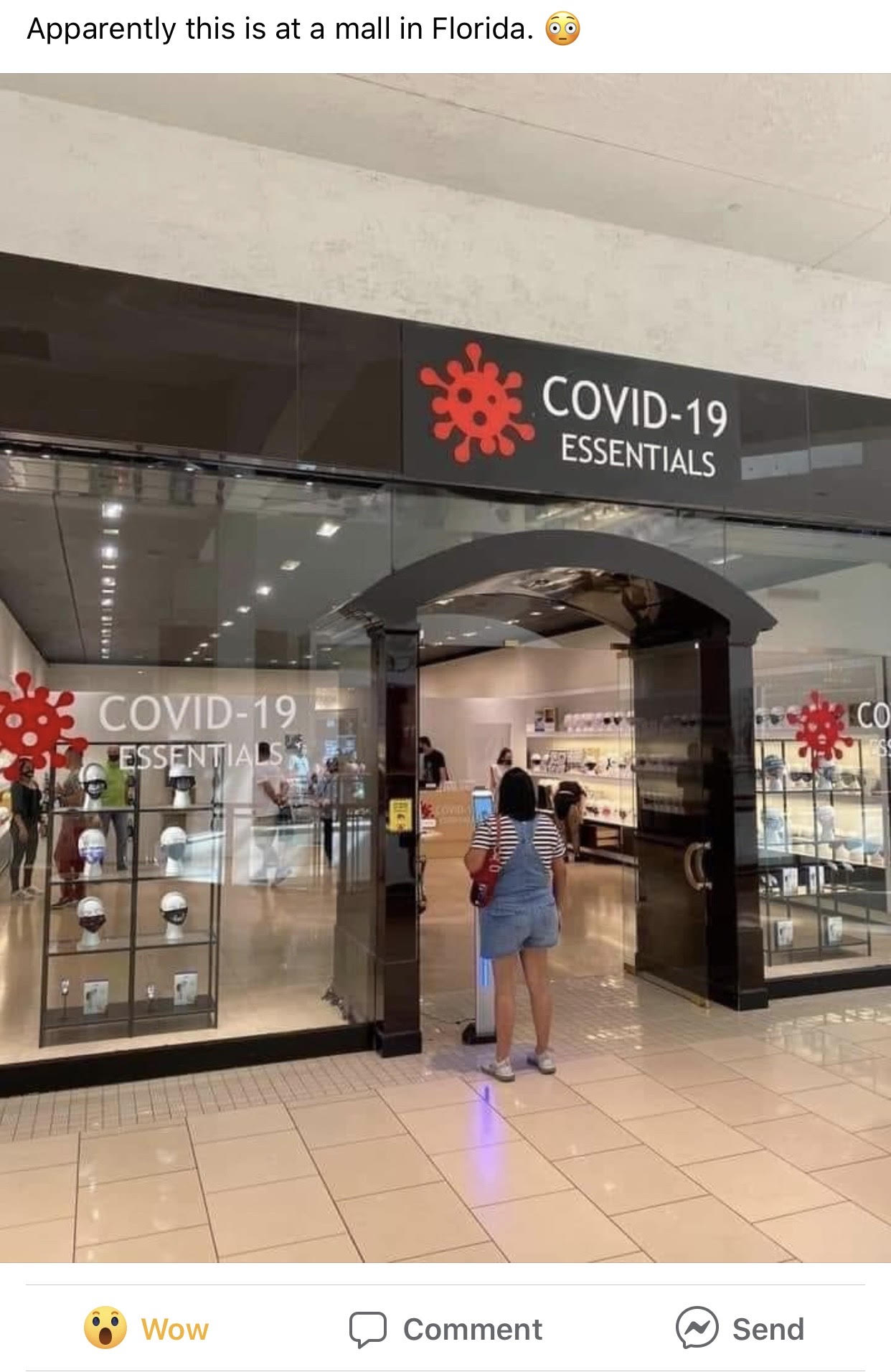 A photograph of a Covid store. Possibly in Florida. At first when I saw it, I thought is this real? So much about this year feels unreal to me.
