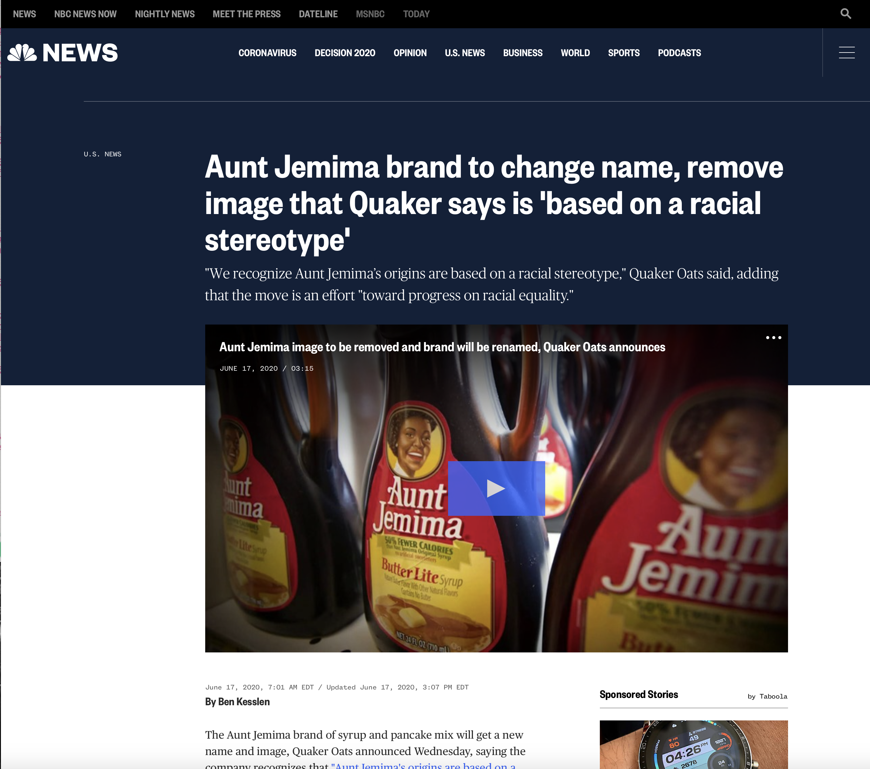 Aunt Jemima the popular syrup and pancake mix is getting a new name. The brand which is based on a racial stereotype is getting a much-needed overhaul.