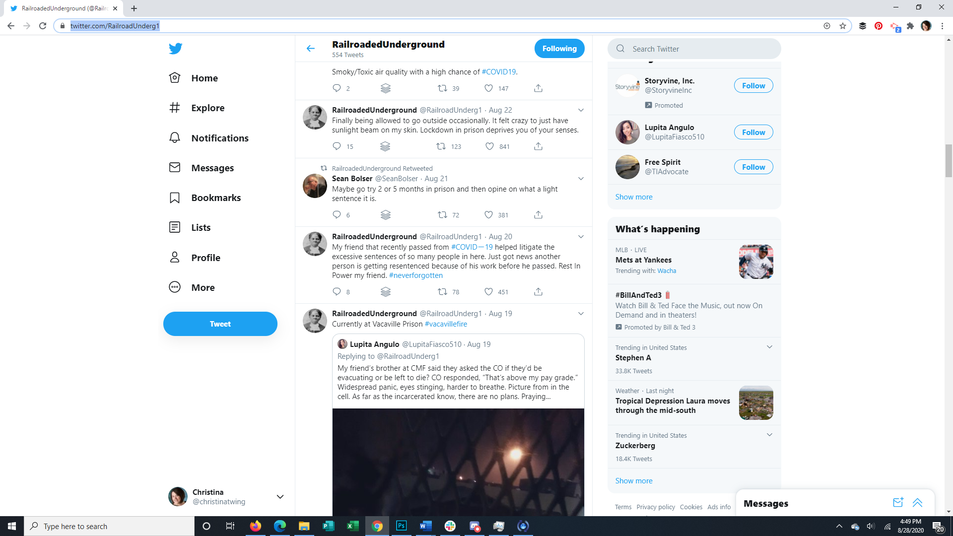 Tweets from Inside a Prison 08/16-08/22/2020 by Railroaded Underground