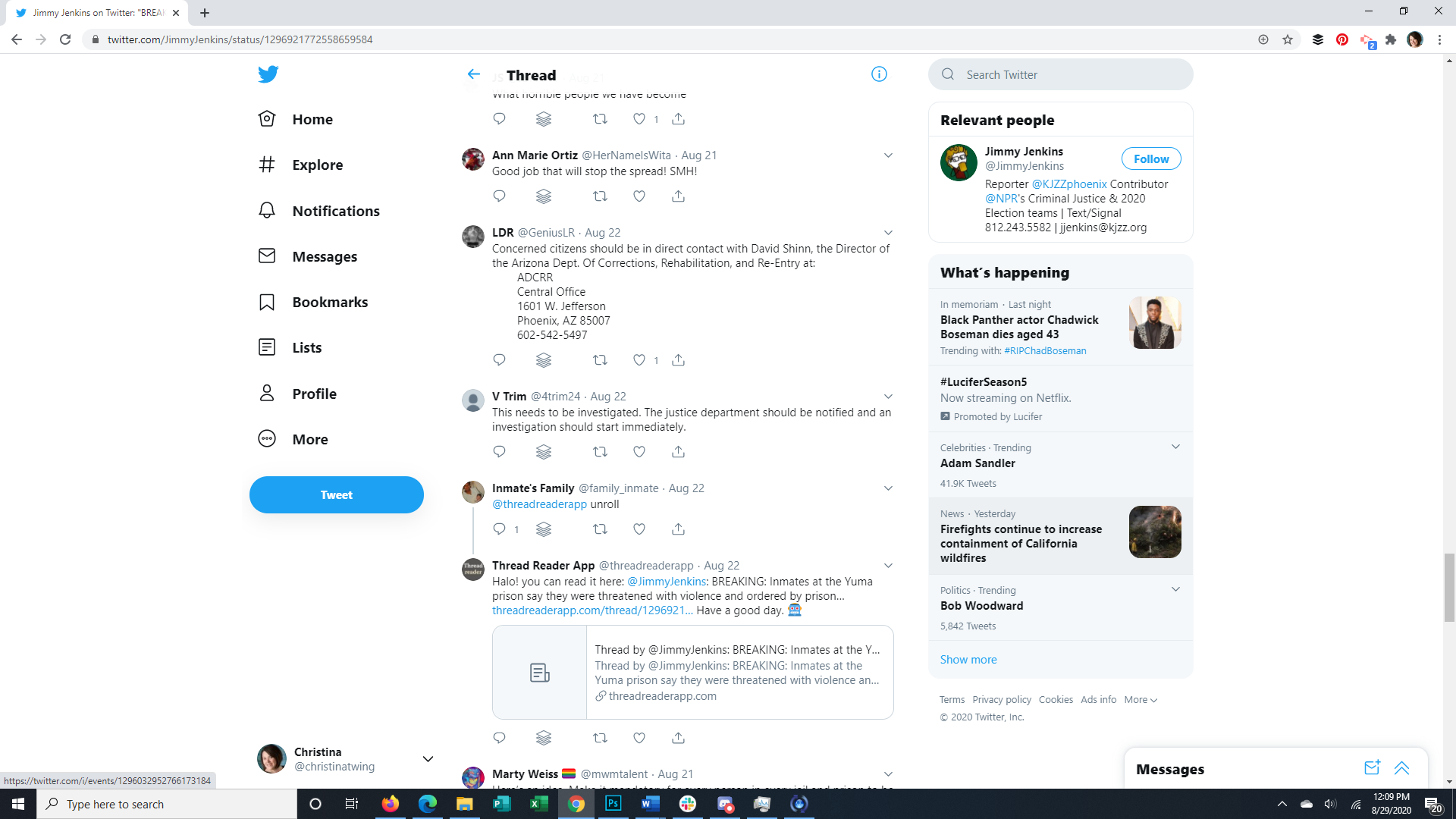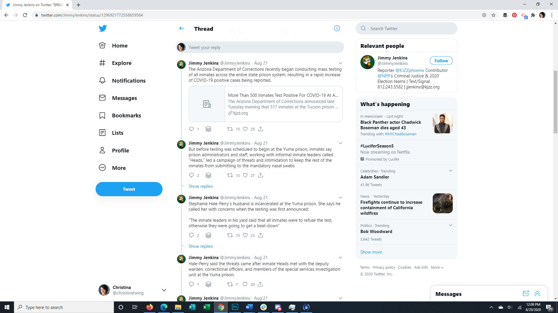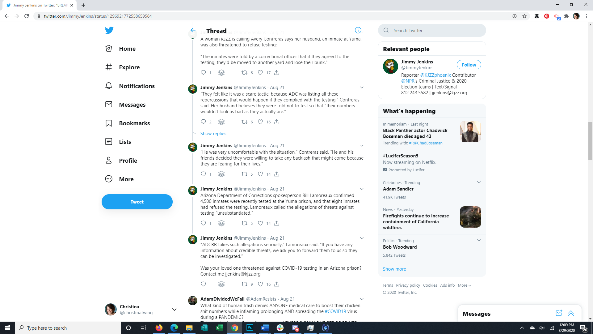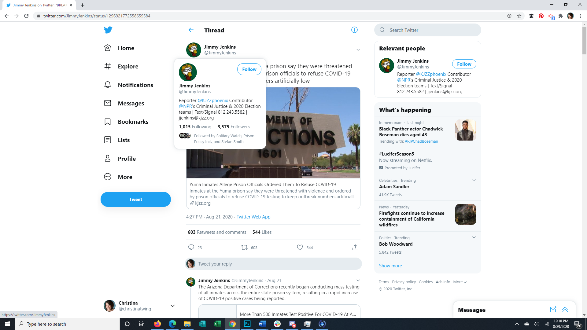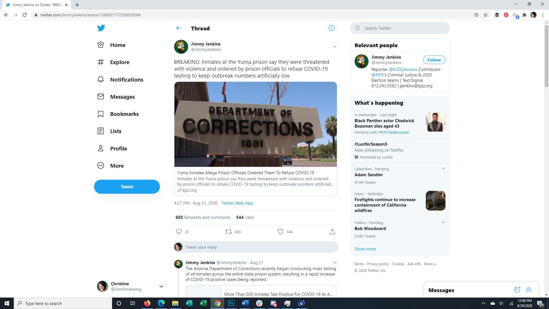 This Tweet and linked article explain a haunting story. Inmates at the Yuma prison in Arizona were threatened with a "beat down" unless they refused to take a Covid-19 test in an effort by the administration to keep the case count down. The replies to this Tweet show the public's response to this allegation.
