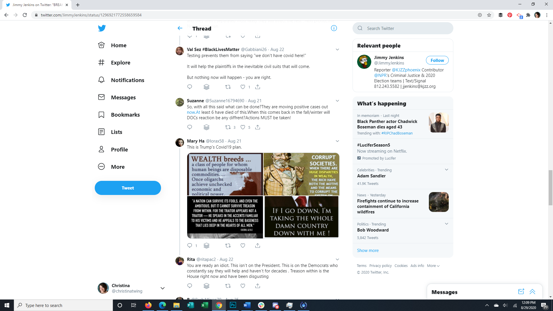 This item was submitted on August 29, 2020 by Chris Twing using the form “Share Your Story” on the site “A Journal of the Plague Year”: https://covid-19archive.org/s/archive