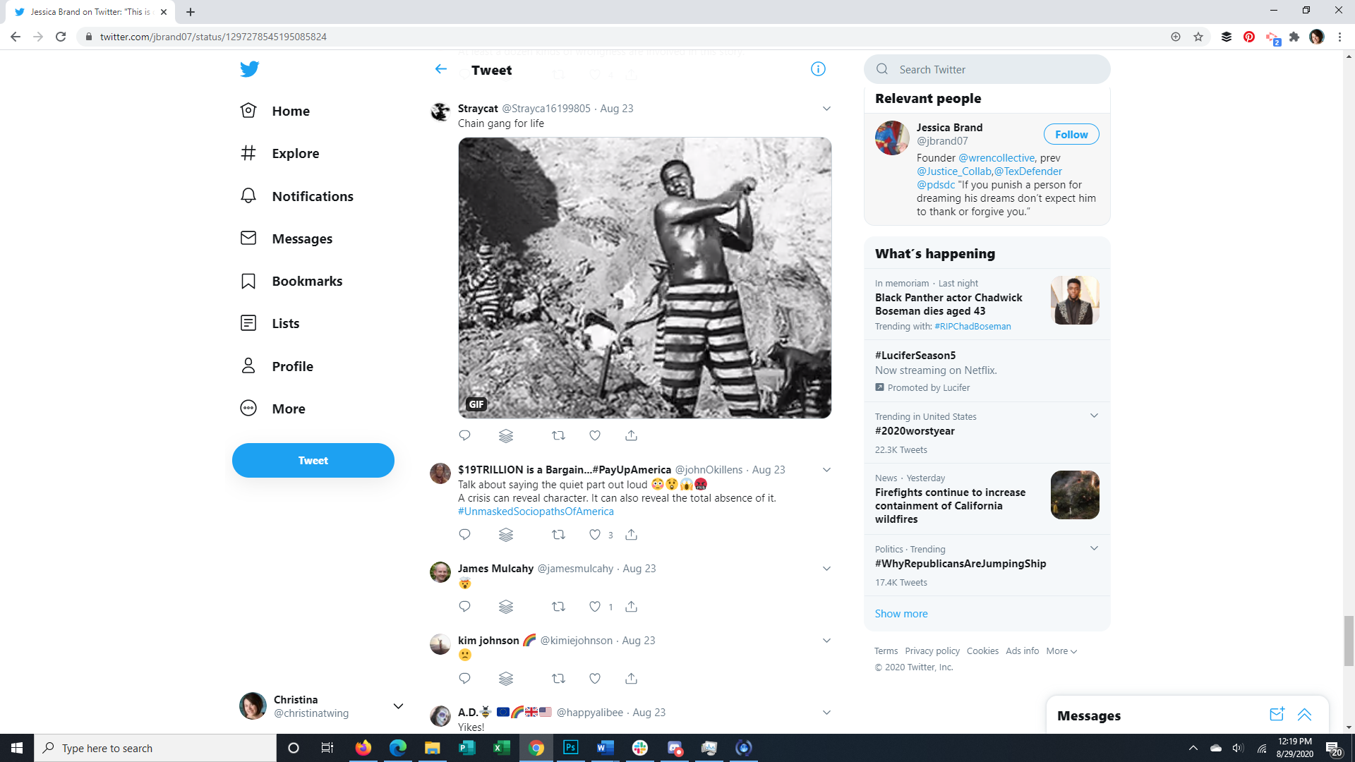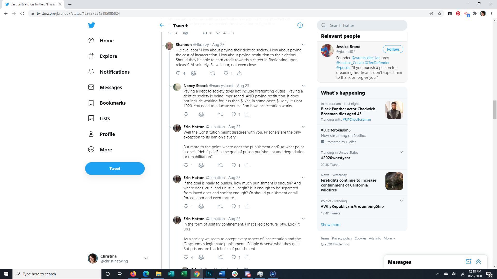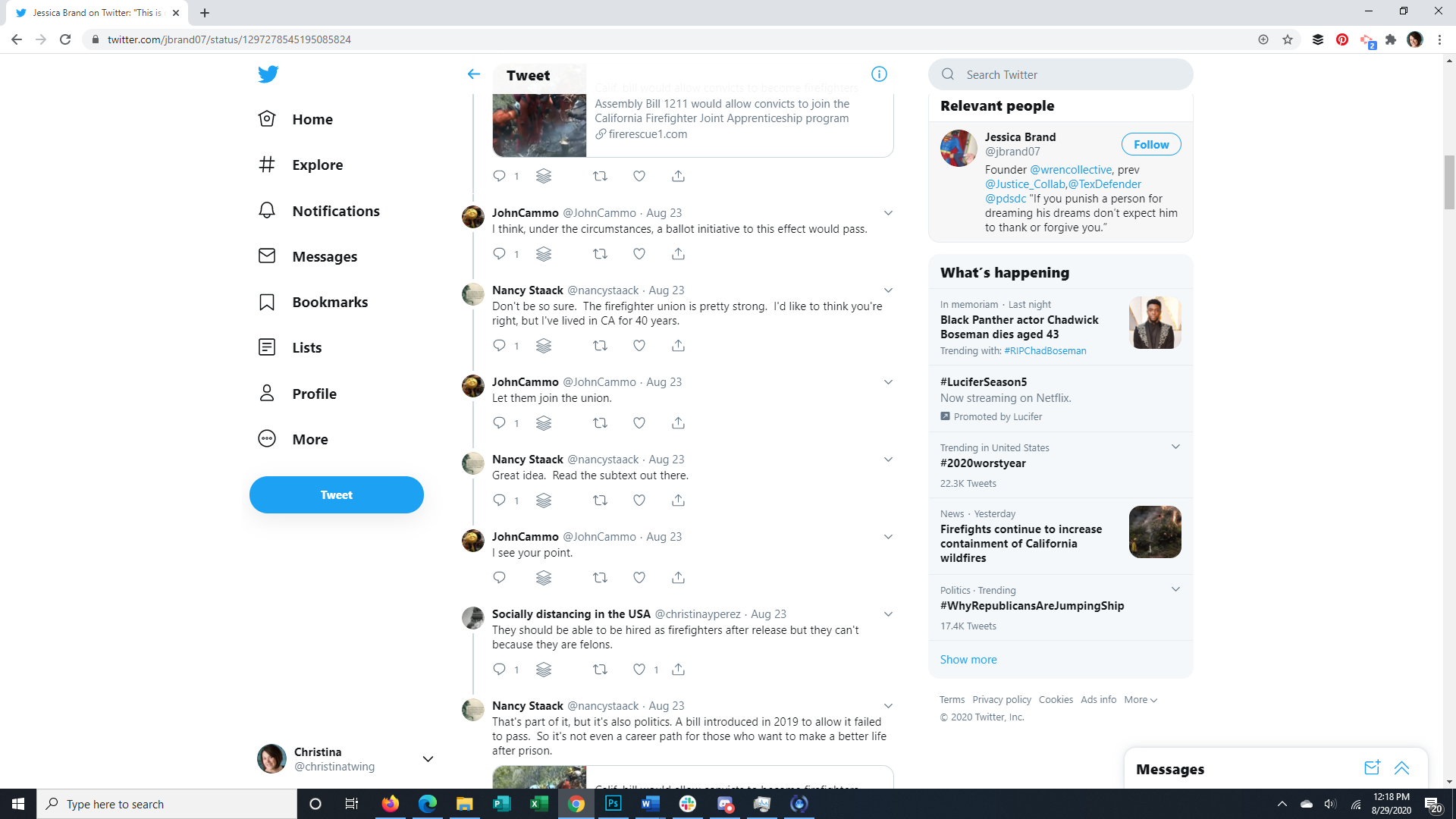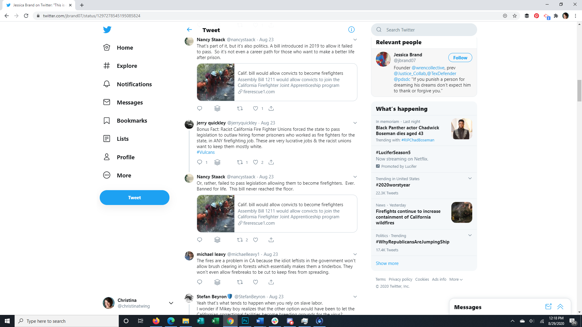 In an effort to slow the spread of Covid-19 incarceration facilities across the nation have released a small number of people earlier than they would have been otherwise. This has created a unique situation in California, a state that relies on prison labor to combat wildfires every year. As the writer of this Tweet calls out, much of the general public and the nation's politicians believe "if you do the crime, you do the time" and feel this extends to using inmates for fighting fires.