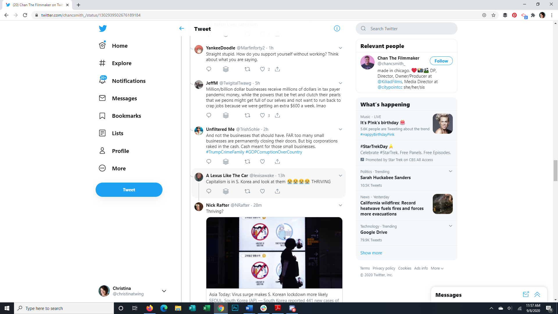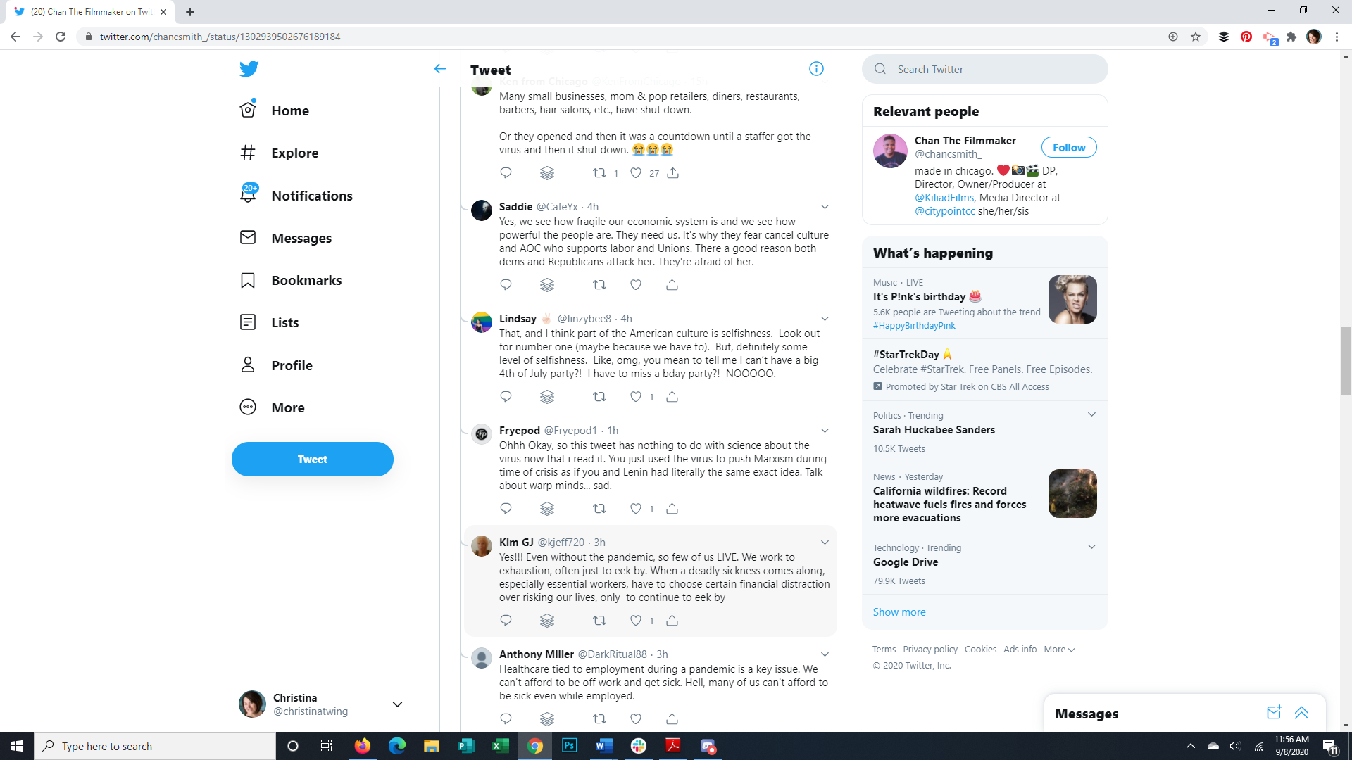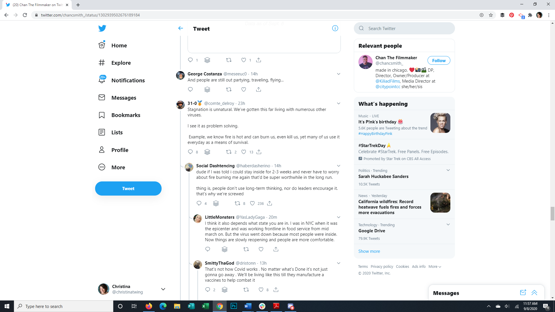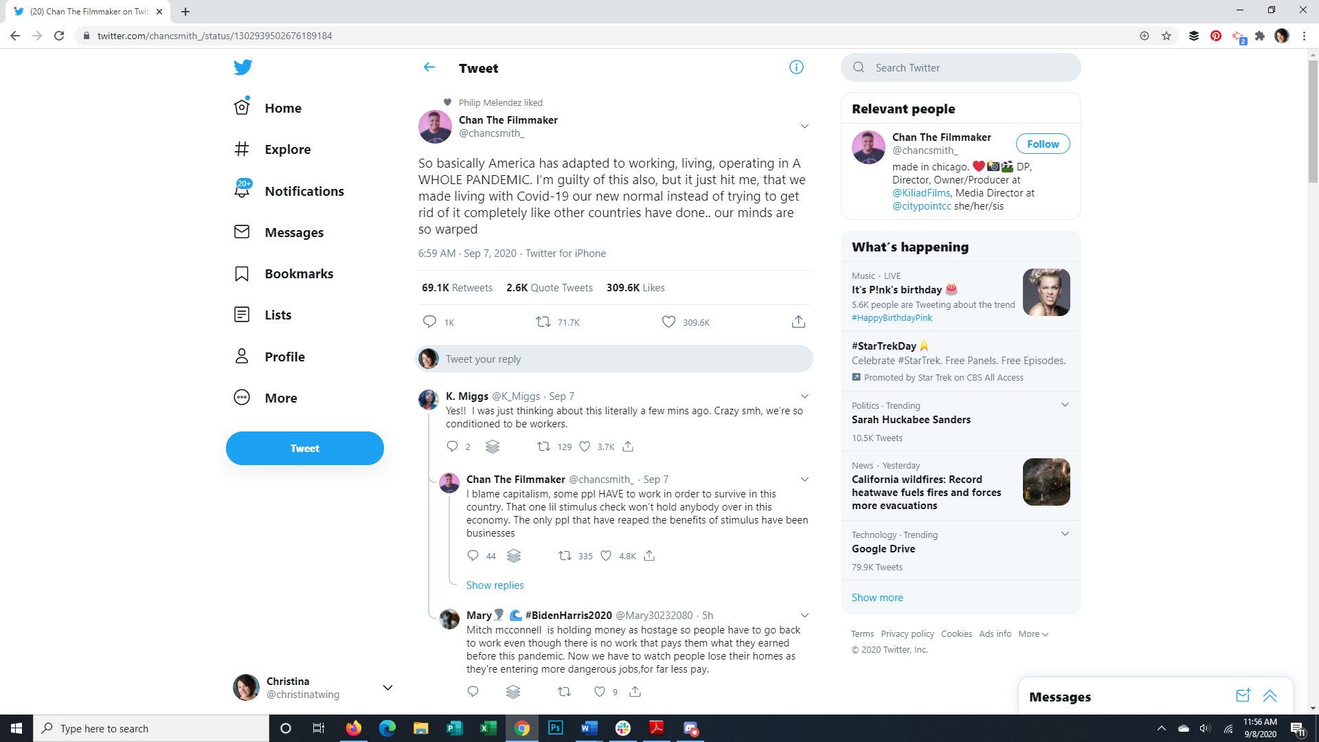 This Tweet discusses the fact that the US has adapted its entire society to function in a pandemic rather than fighting the pandemic. The author asks if we should have done this? Also included are SOME of the replies to this Tweet showing peoples feelings.