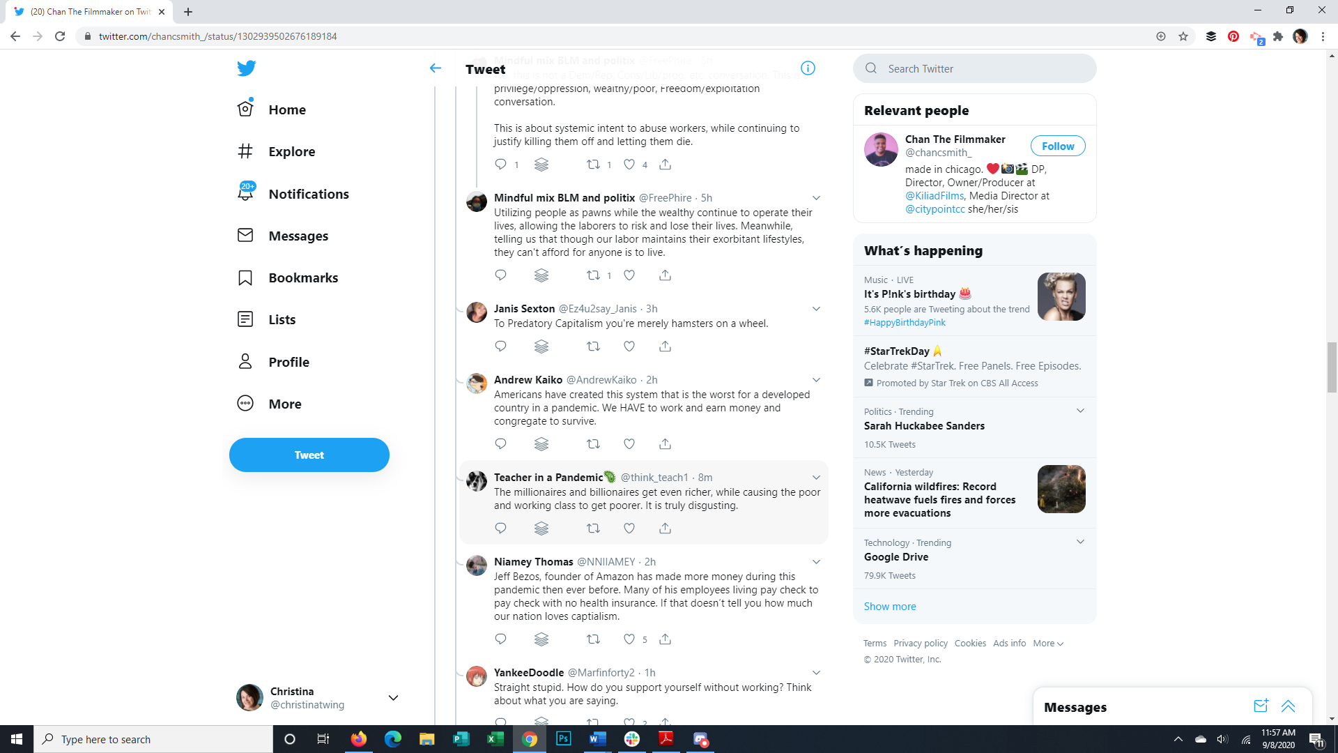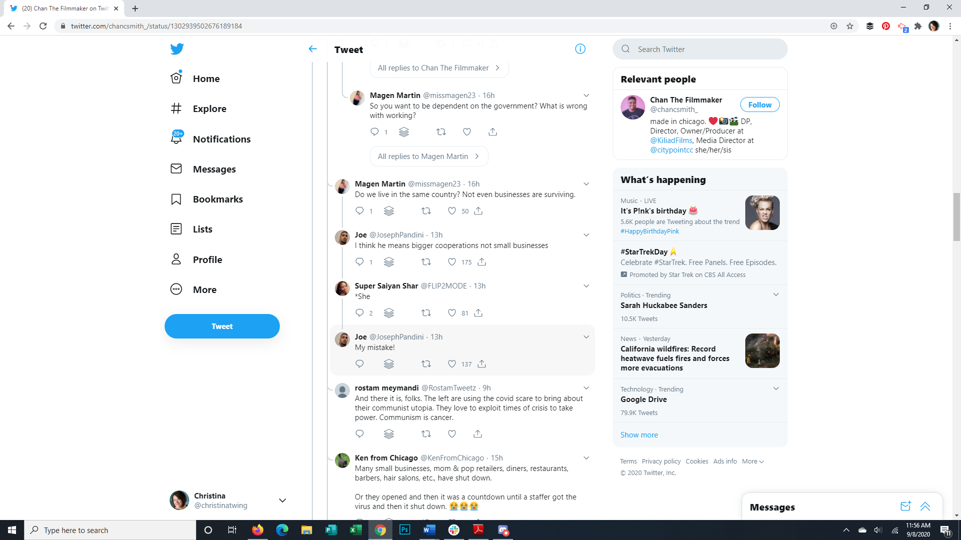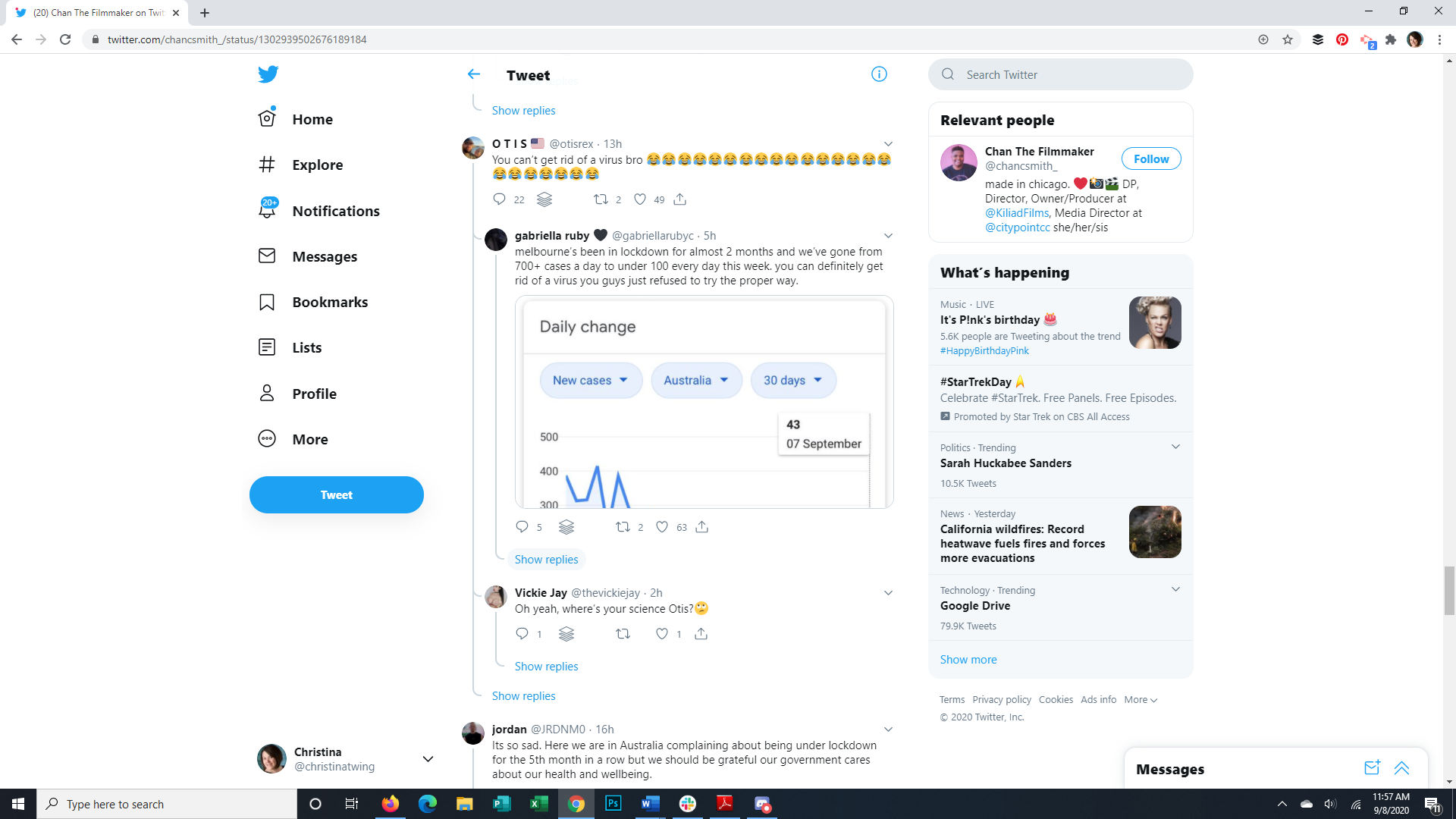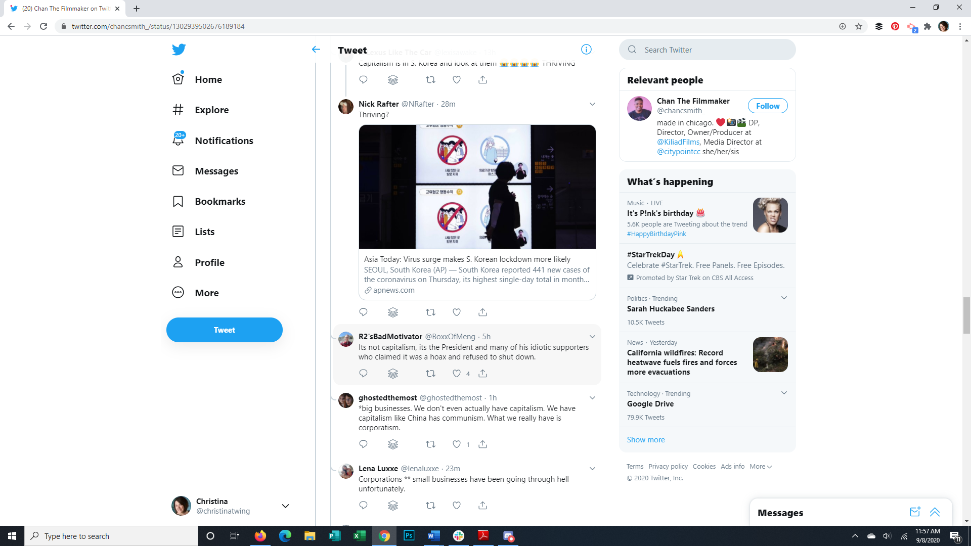 This Tweet discusses the fact that the US has adapted its entire society to function in a pandemic rather than fighting the pandemic. The author asks if we should have done this? Also included are SOME of the replies to this Tweet showing peoples feelings.