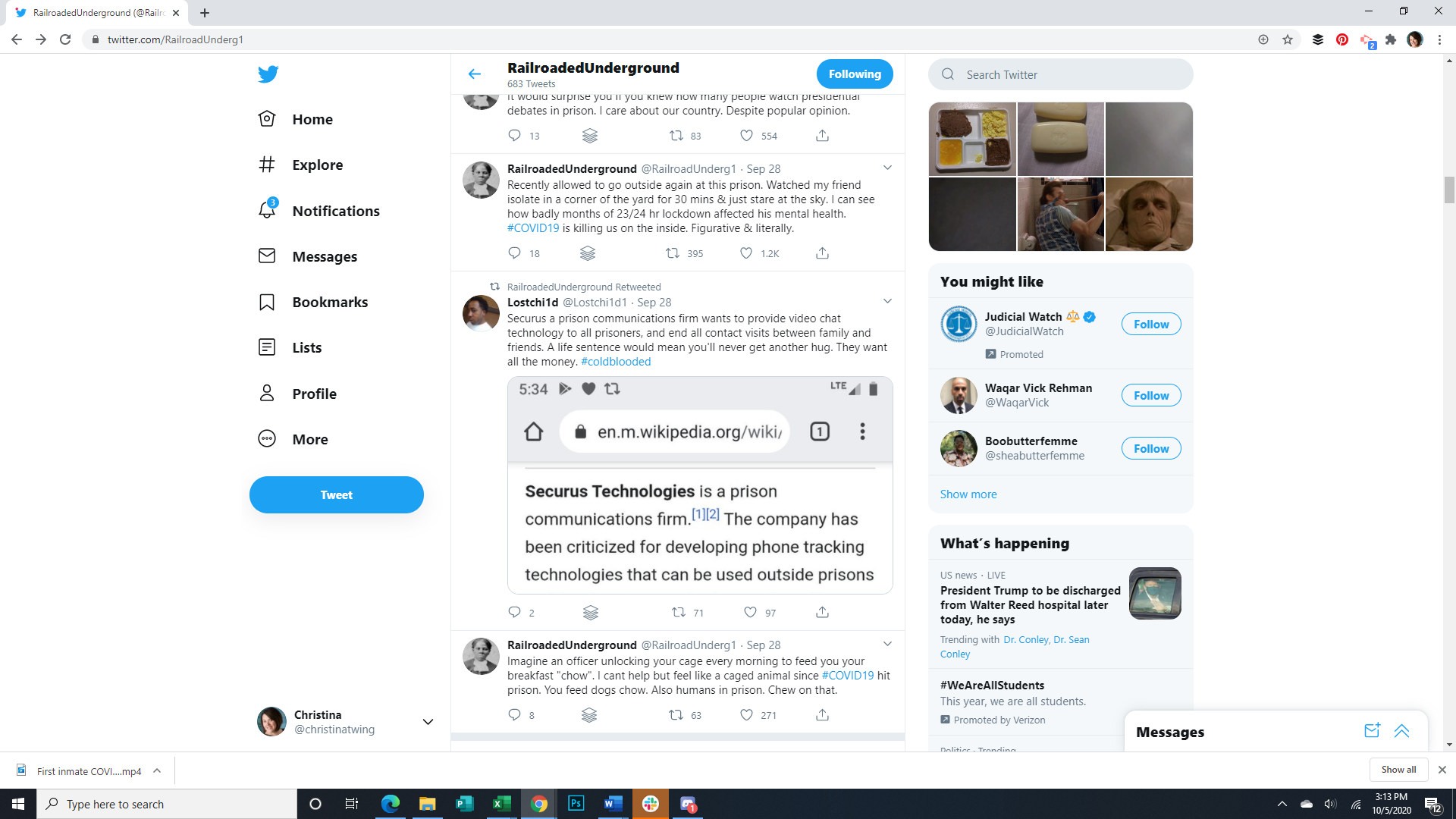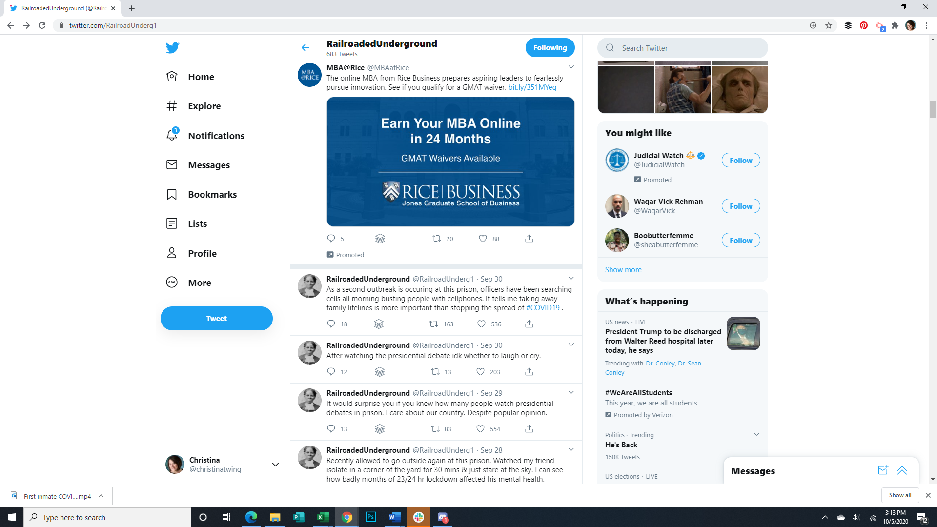 Tweets from Inside a Prison 09/27-10/03/2020 by Railroad Underground