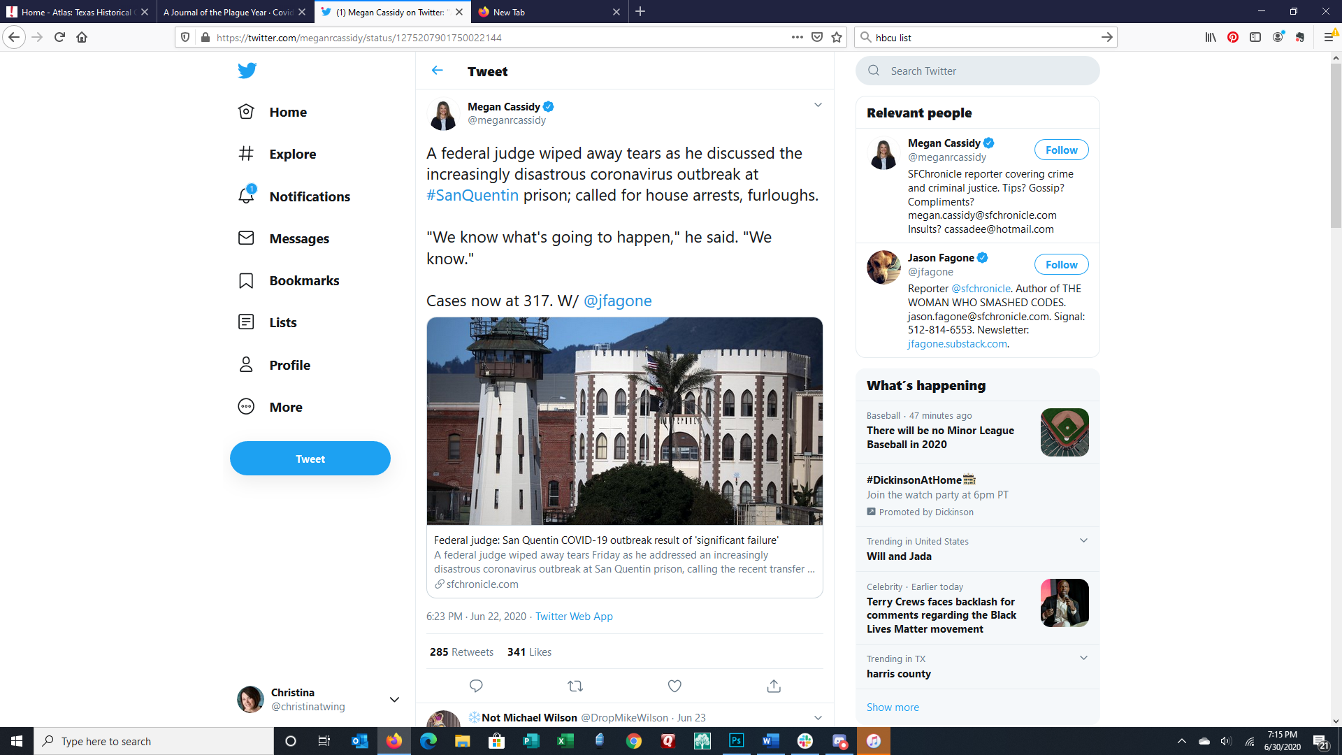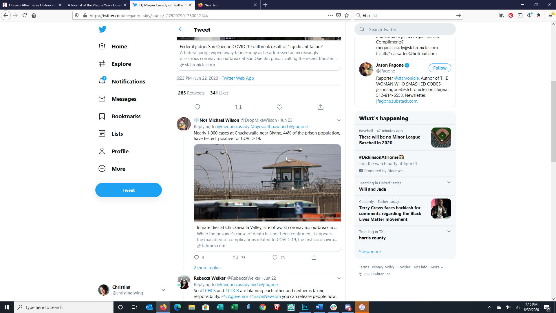 Twitter, social media, incarceration, jail, prison, outbreak, emotion