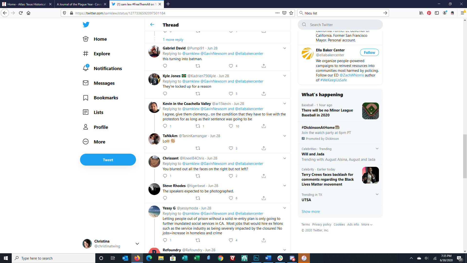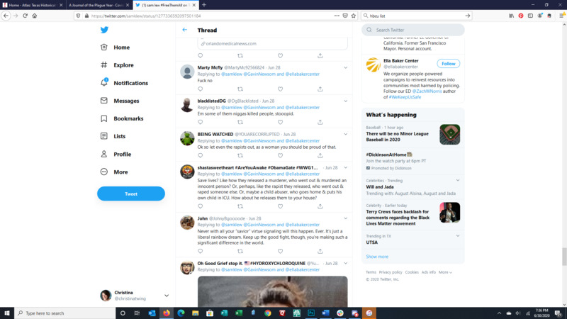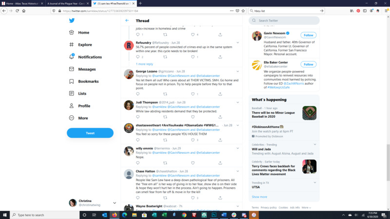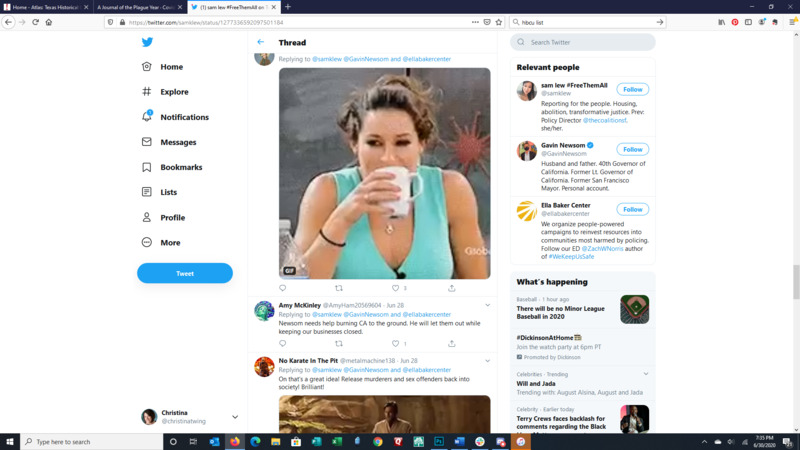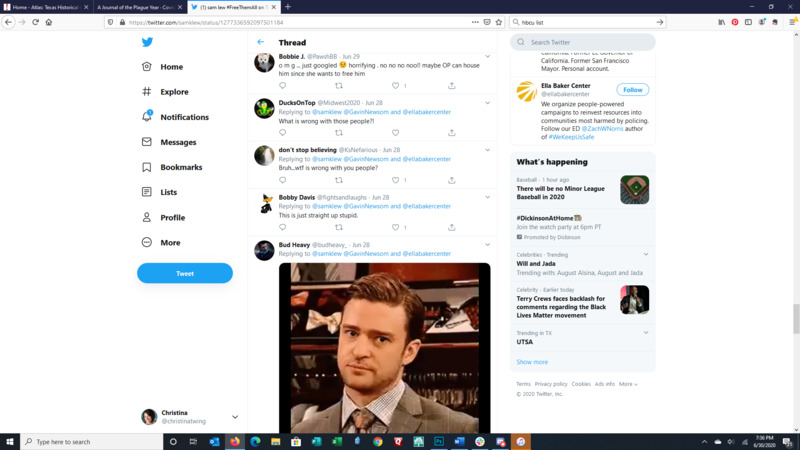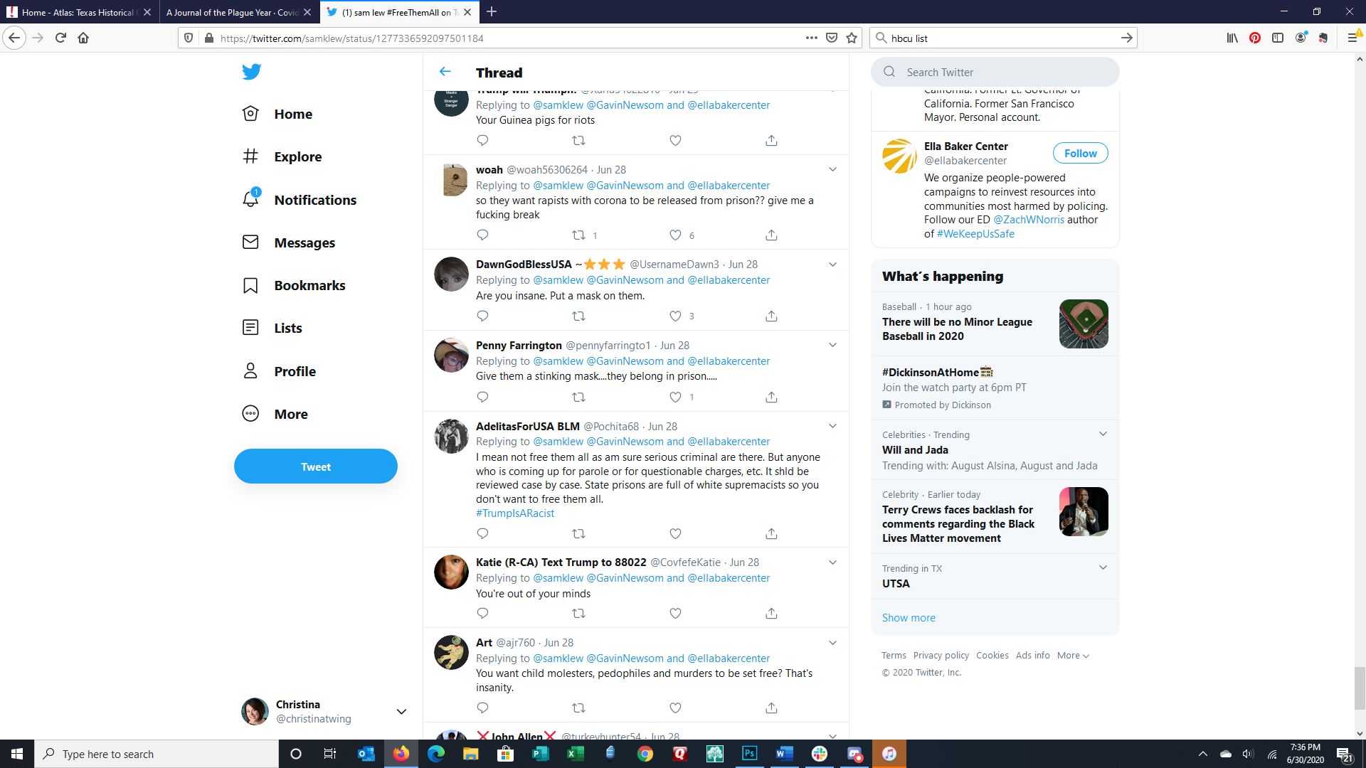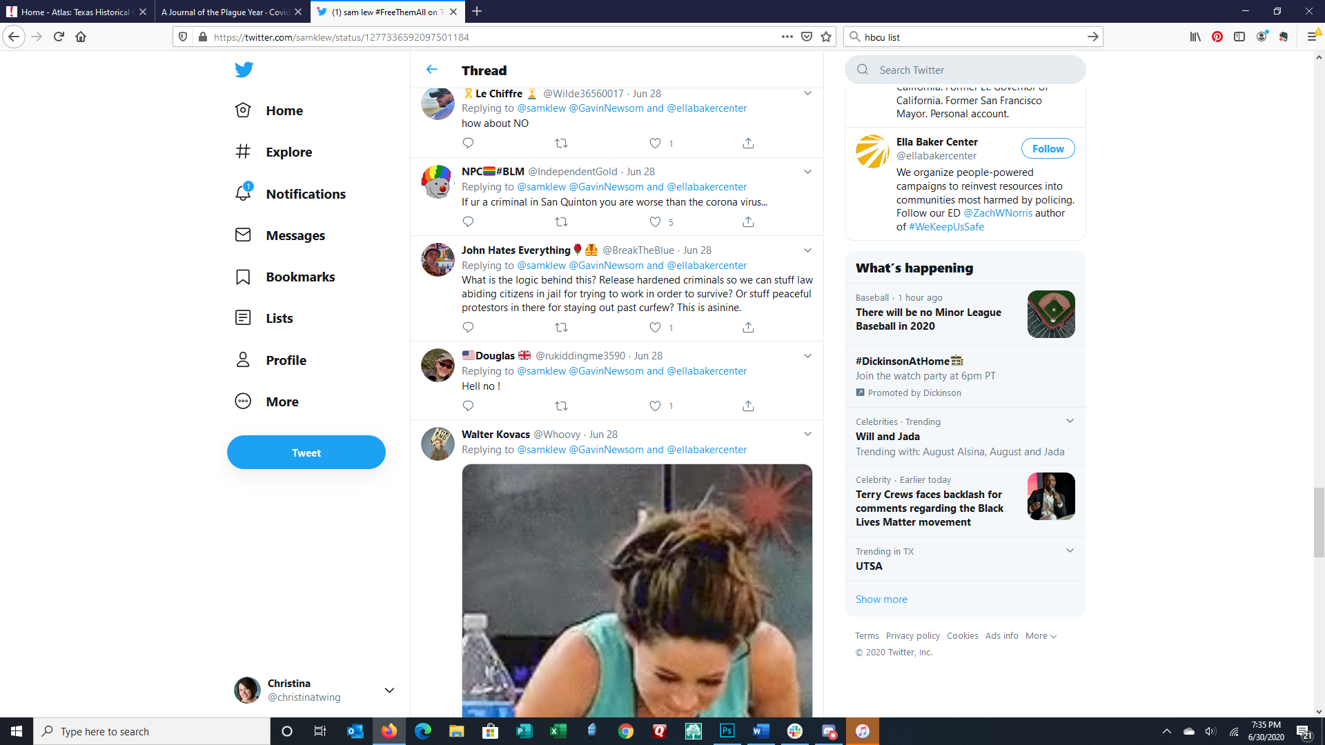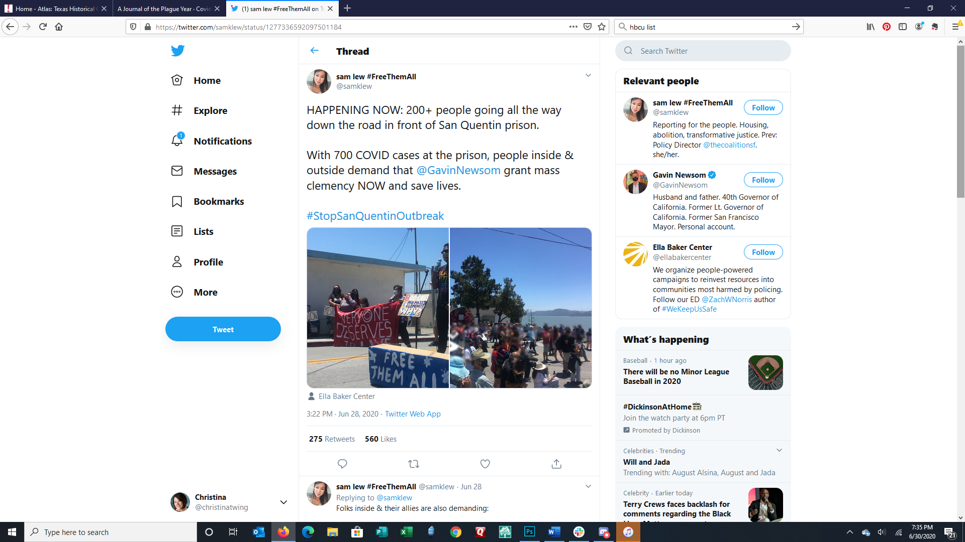 This is a Twitter post (social media) and the responses it received about a protest urging California governor Gavin Newsom to give early release to inmates to protect them from contracting covid-19. Here is a link to an article referenced in the thread https://www.orlandomedicalnews.com/article/3545/letter-to-the-editor-why-increasing-number-of-cases-of-covid-19-is-not-bad-news
