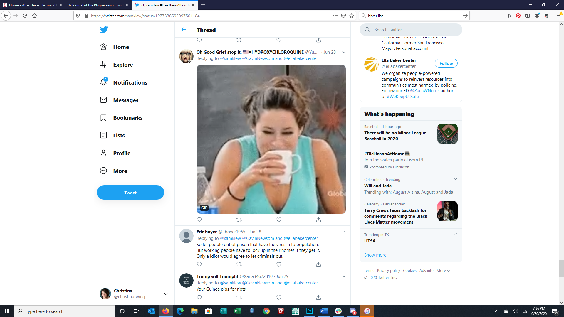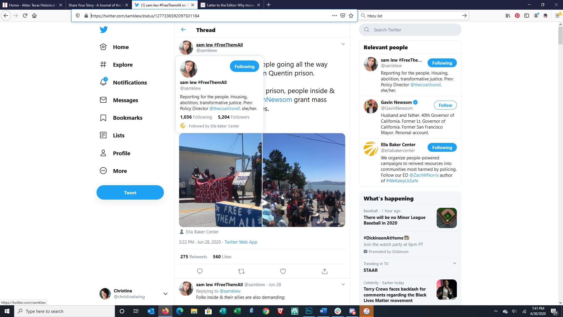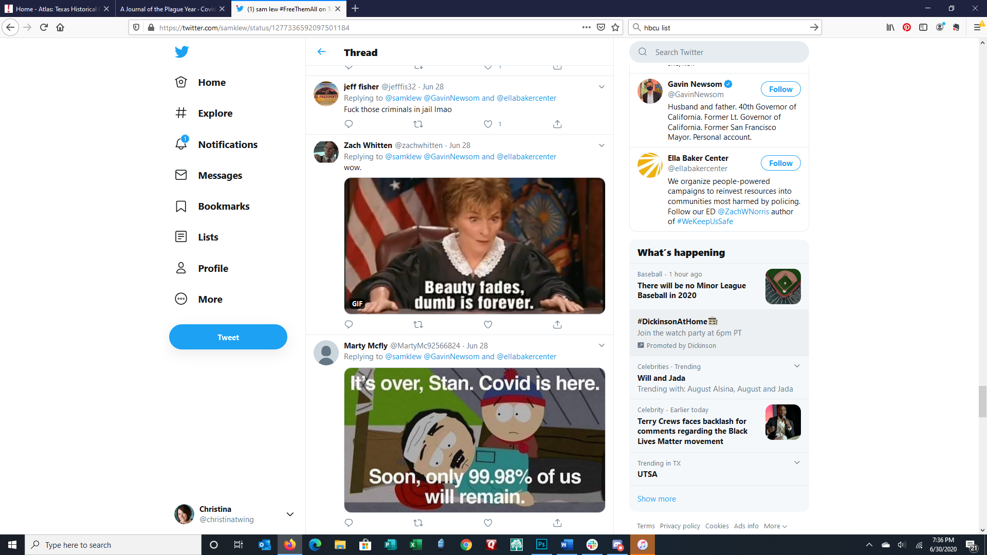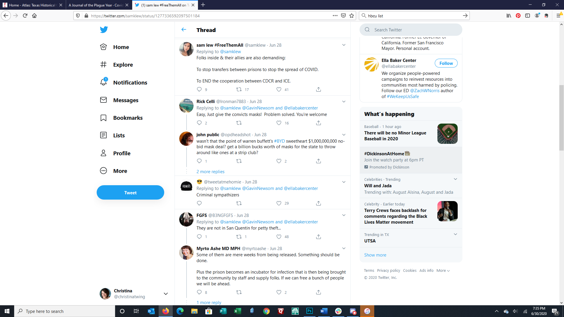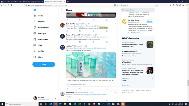 This is a Twitter post (social media) and the responses it received about a protest urging California governor Gavin Newsom to give early release to inmates to protect them from contracting covid-19. Here is a link to an article referenced in the thread https://www.orlandomedicalnews.com/article/3545/letter-to-the-editor-why-increasing-number-of-cases-of-covid-19-is-not-bad-news