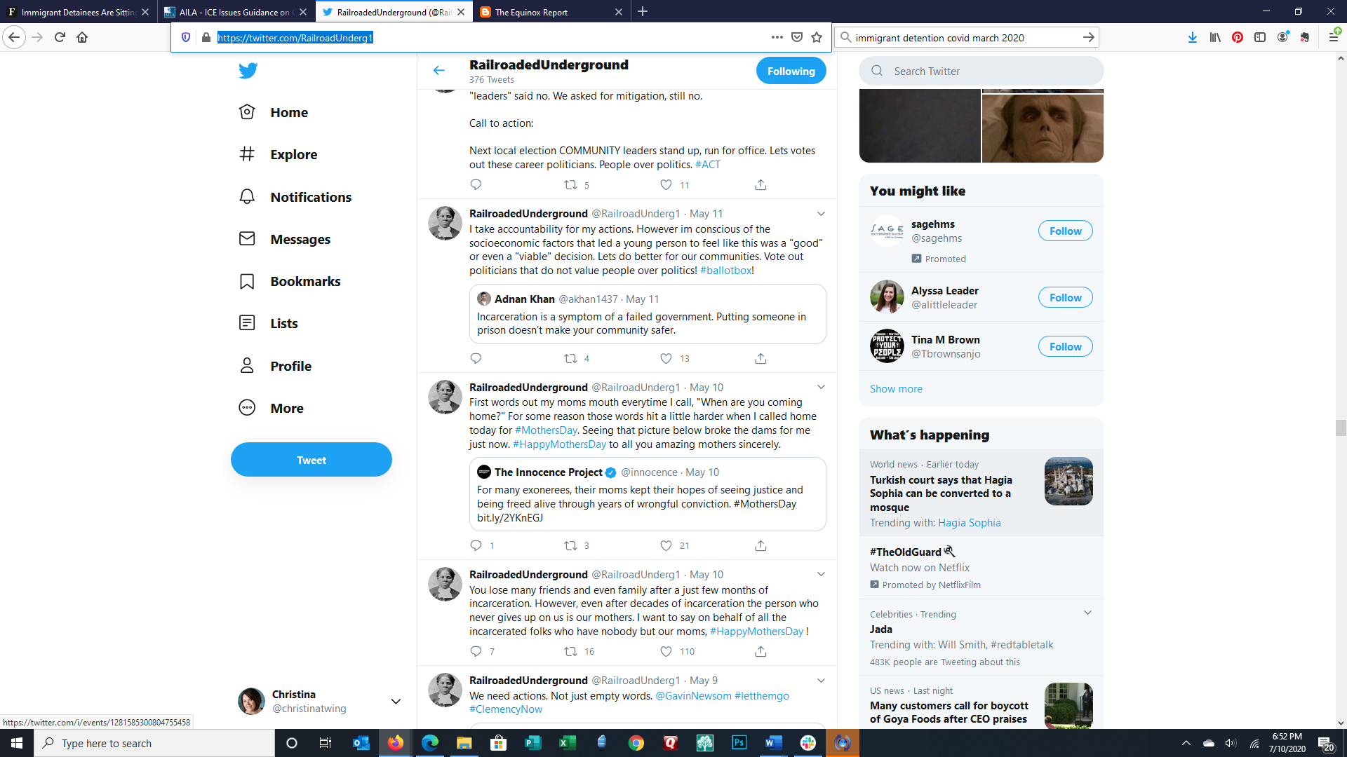 These images show the Tweets of an incarcerated person utilizing a contraband cell phone to let the outside world know about prison conditions during the pandemic. This week he talks about how mother's are the ones that never give up, Mother's Day, justice, socioeconomic factors that lead to prison, death, politicians, voting, lethal injection, and the words of a six year old child.
