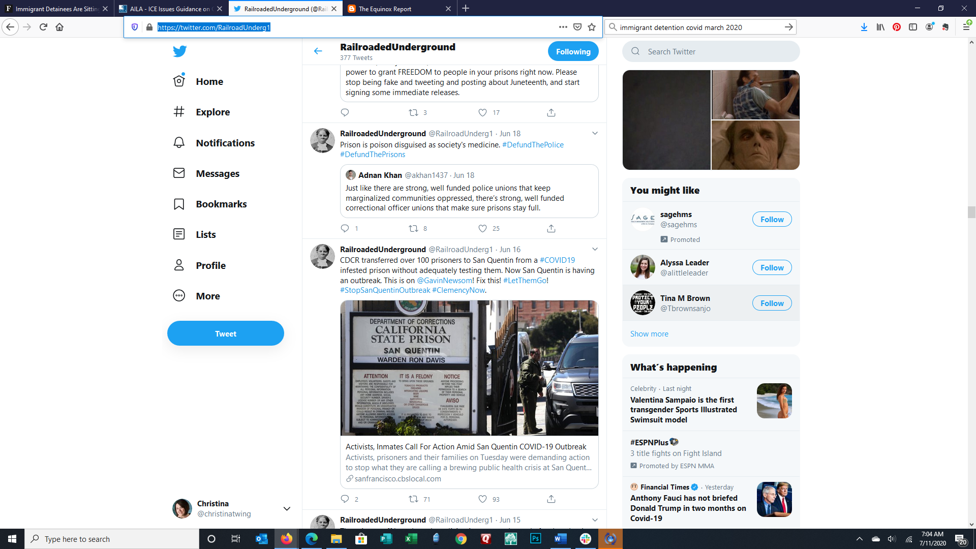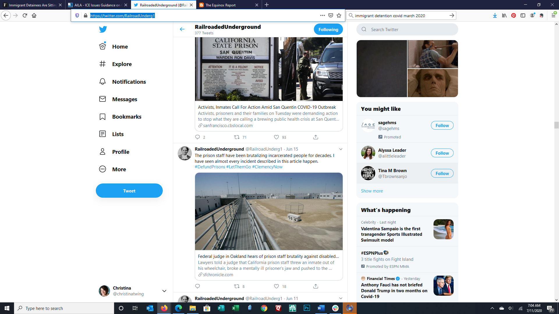 These images show the Tweets of a prison inmate who chose to use a contraband cell phone to show the public what is happening inside of the nation's prisons during the coronavirus pandemic. This week he discusses defunding prisons, the ongoing brutality inside prisons, San Quentin, outbreaks from transfers, Juneteenth, taking action not just paying lip service to the holiday, black communities, and early release beginning with the elderly and others most at risk.
