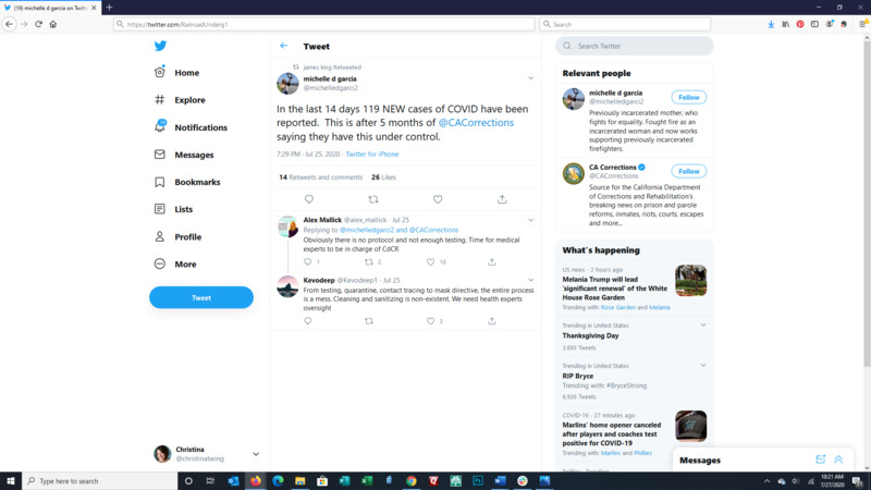 This Tweet shows the continuing crisis inside of the nation's prisons. Five months into the pandemic and the virus is still spreading like wildfire.