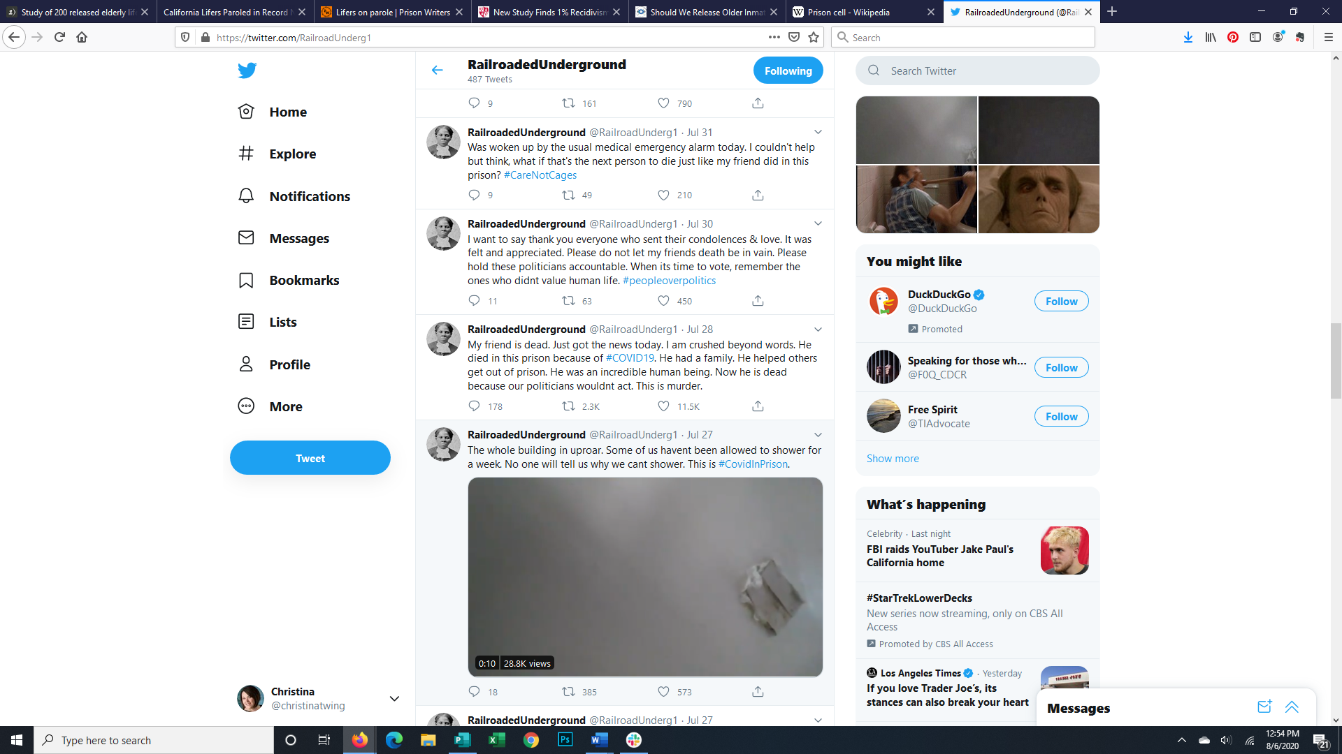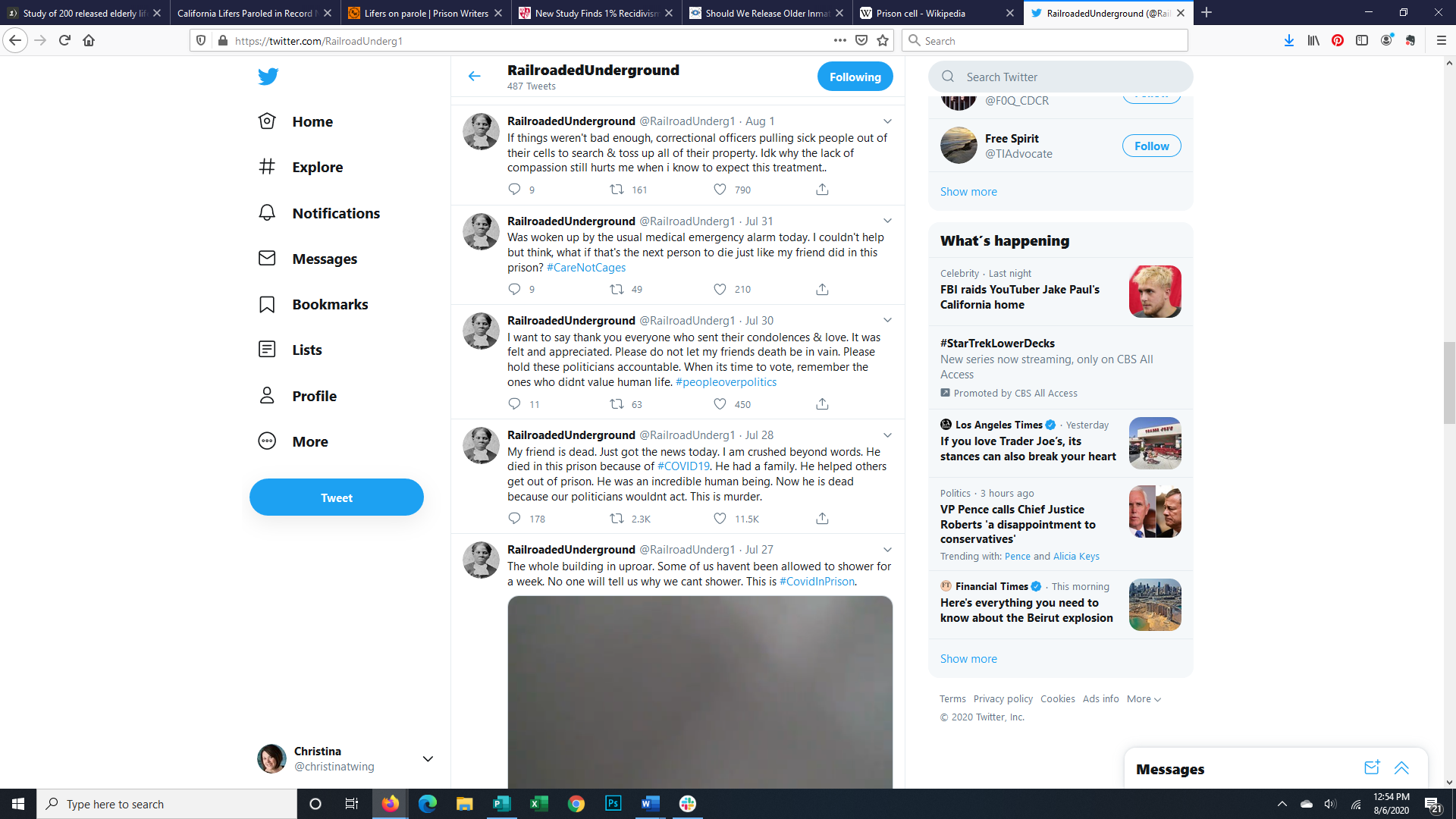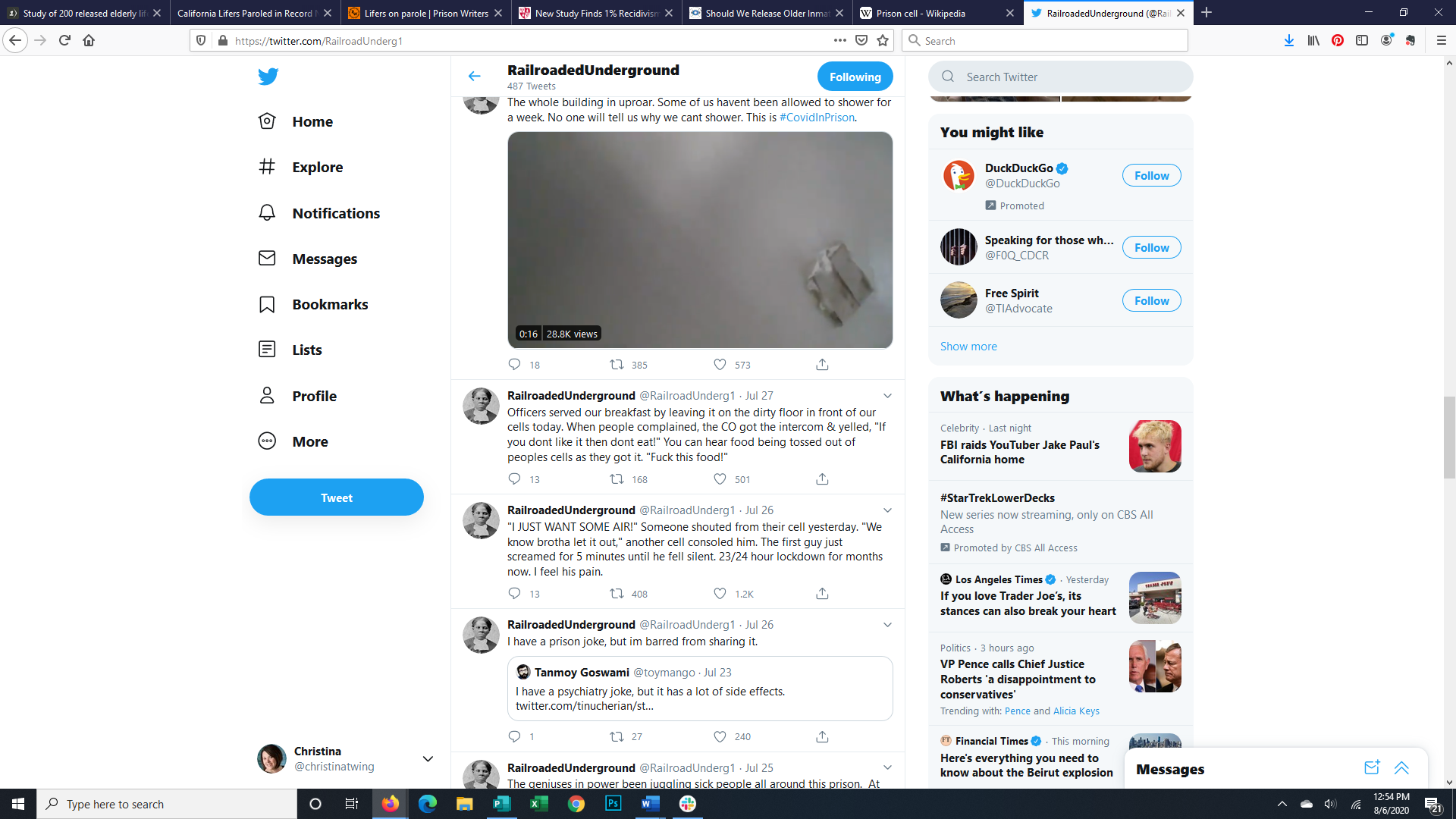 Tweets from Inside a Prison 07/26-08/01/2020 by Railroaded Underground