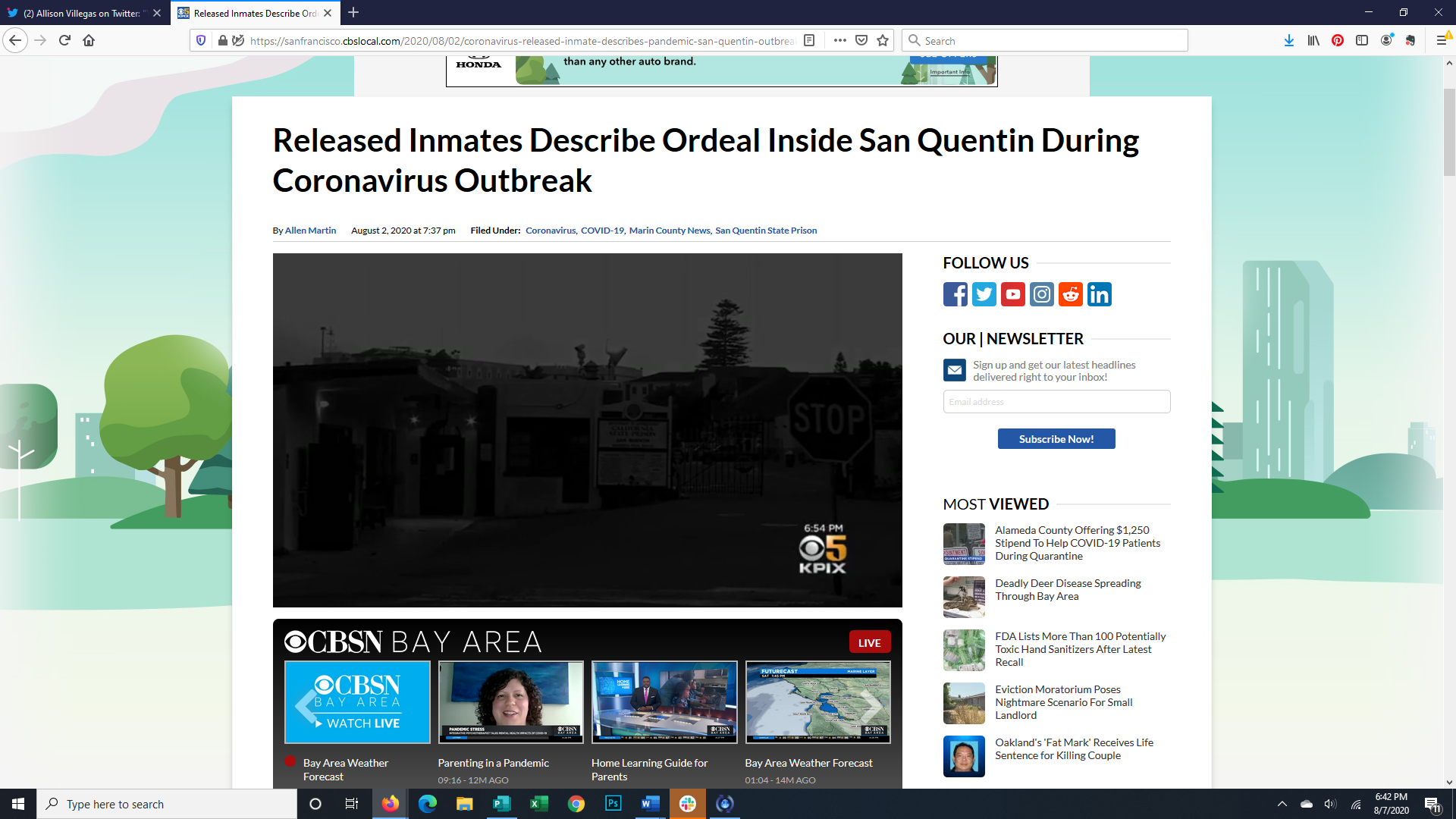 This news story talks with three men that were recently released from San Quentin Prison in California to learn about conditions inside the prison during the Covid-19 Pandemic. They all believe that the virus was brought to the prison when inmates from another California state prison, Chino, were transferred in.