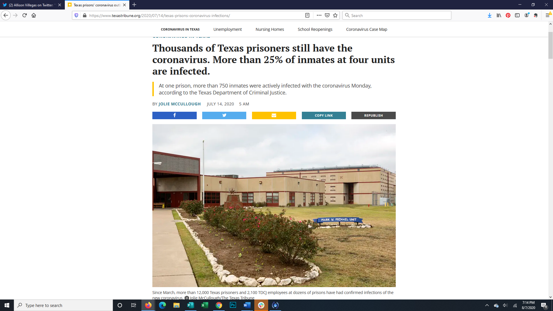 "Two Texas prisons each have more than 670 inmates with active coronavirus infections, according to the Texas Department of Criminal Justice, the highest counts seen at any state lockup since the pandemic began." What makes this Covid so scary in a prison is that if caught it can turn a short sentence into a defacto death sentence. For this reason many advocate early release for nonviolent offenders but Texas Governor Greg Abbott does not agree.