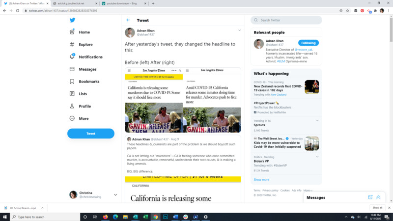 Language is changing to be more people focused. This has happened in several arenas including incarceration. Instead of calling people inmates, prisoners, or convicts there is a movement to change the language to a people first option such as incarcerated person. One activist, Adnan Khan, of Restore Justice, a California based nonprofit seeking to change the criminal justice system, saw his Tweet about people first language cause the Los Angeles Times to change their headline.