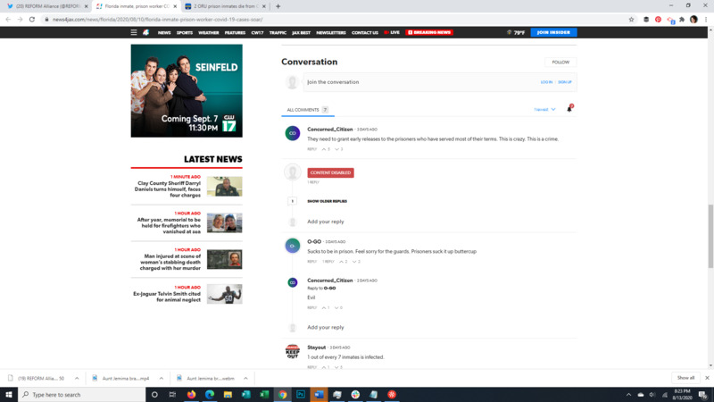As an example of how quickly the virus spreads the article sites the Taylor Correctional Institute going from 25 cases on August 1st to 564 on August 10th. To date over seventy-three thousand tests have been conducted in the states correctional facilities.