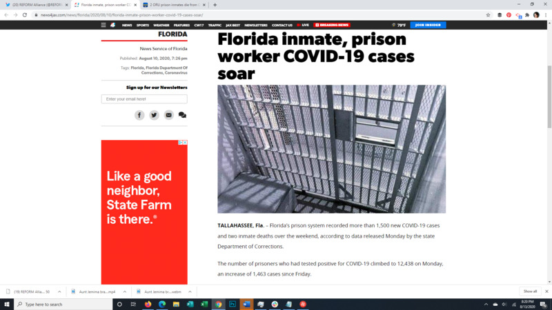 incarceration, prison, Florida, testing, cases, death, defacto death sentence