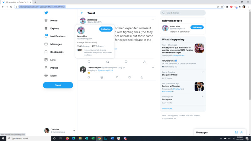 This item was submitted on August 22, 2020 by Chris Twing using the form “Share Your Story” on the site “A Journal of the Plague Year”: https://www.covid-19archive.org/s/archive