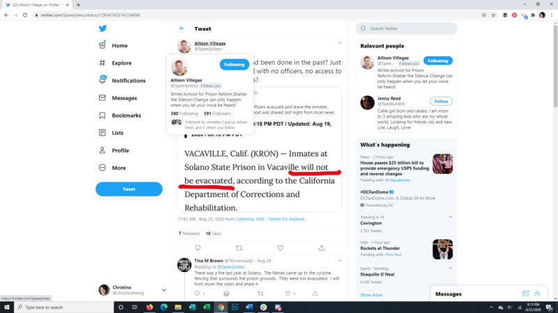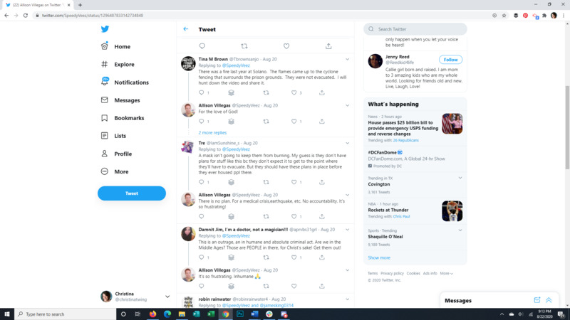While California depends on prison labor for wildfire firefighters this Tweet brings attention the state refusing to evacuate prisons in threat of wildfire danger. Other Twitter posts have mentioned speaking to inmates at Solano and them mentioning guards coming in with ash on their uniforms. The fires are that close!