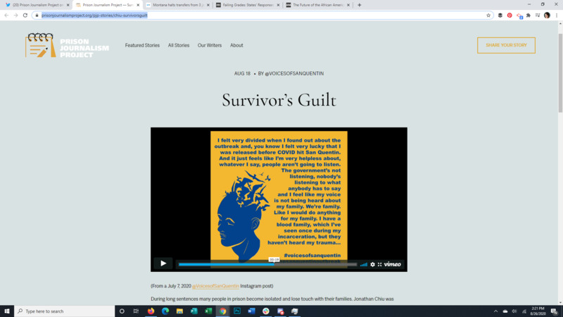 Incarceration, prison, California, survivors guilt, emotion, outbreak, Covid