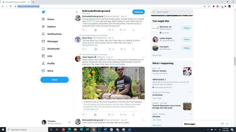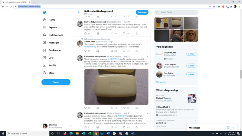 Tweets from Inside a Prison 08/09-08/15/2020 by Railroaded Underground