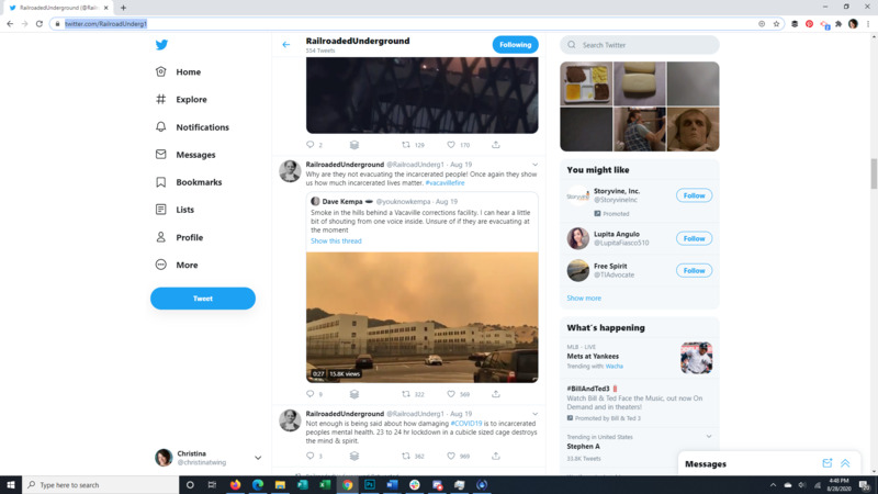 These Tweets were posted by a man inside a prison using a contraband cell phone. This week he talks about their nutrition, lack of air conditioning, lack of showers, the wildfires near Vacaville Prison in California and the lack of plan for evacuation, a friend that recently died of Covid, and how good it felt to finely be allowed to go outside for a bit.