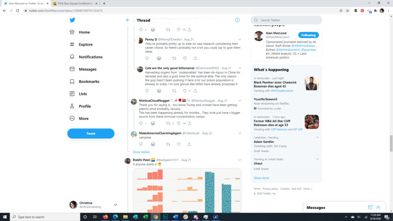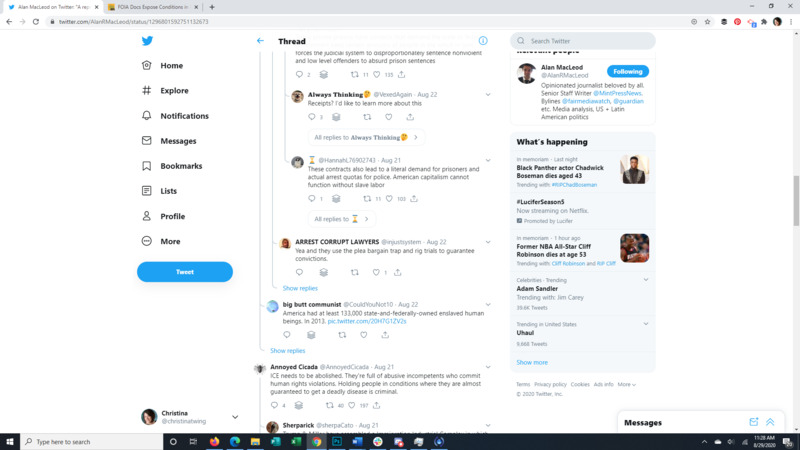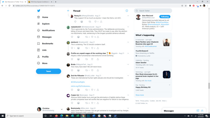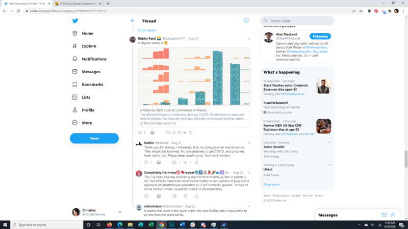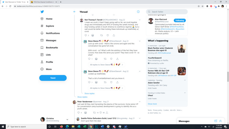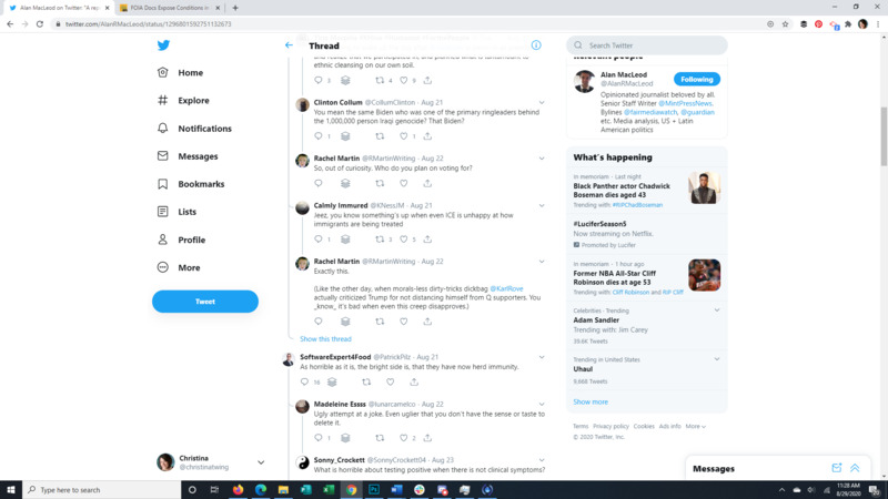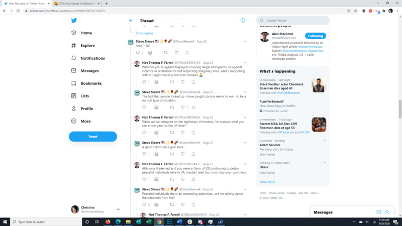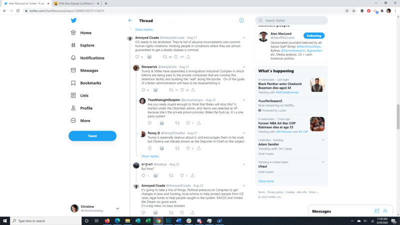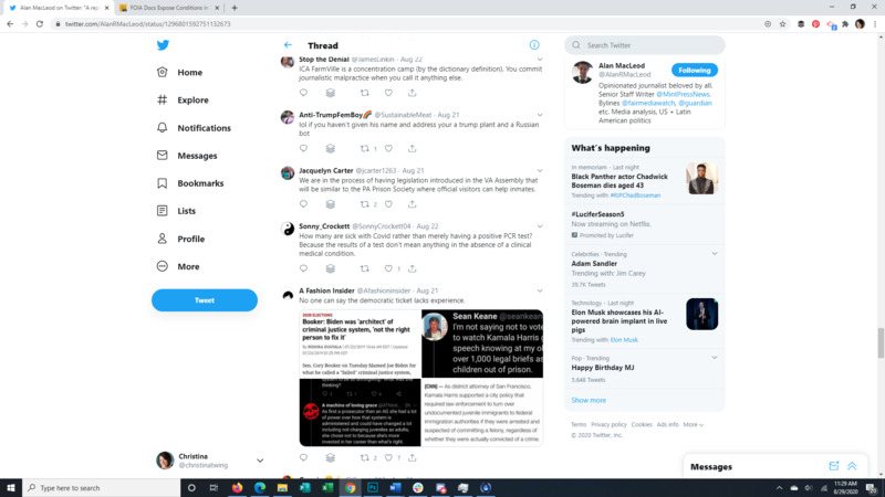 This Tweet brings to light that almost all detainees at the Farmville Detention Facility, a for profit prison in Virginia, have Covid-19. The attached article discusses long running complaints of mistreatment at this facility, some so egregious that even ICE itself was appalled. It also points to the spread of Covid through facility transfers all over the US. The replies to the original Tweet give a good representation of the American public's response to the situation.