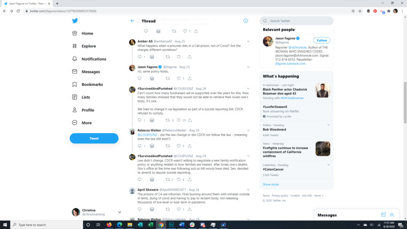 This item was submitted on August 29, 2020 by Chris Twing using the form “Share Your Story” on the site “A Journal of the Plague Year”: https://www.covid-19archive.org/s/archive