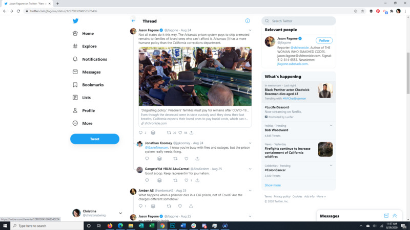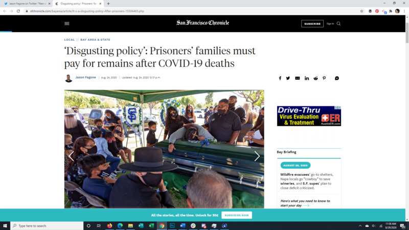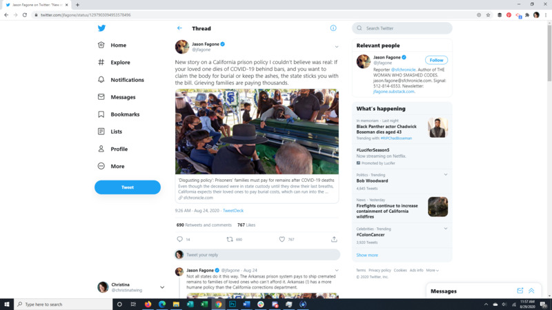 In California if your loved one dies from Covid-19 you have to pay to have their remains sent to you as this Tweet explains.