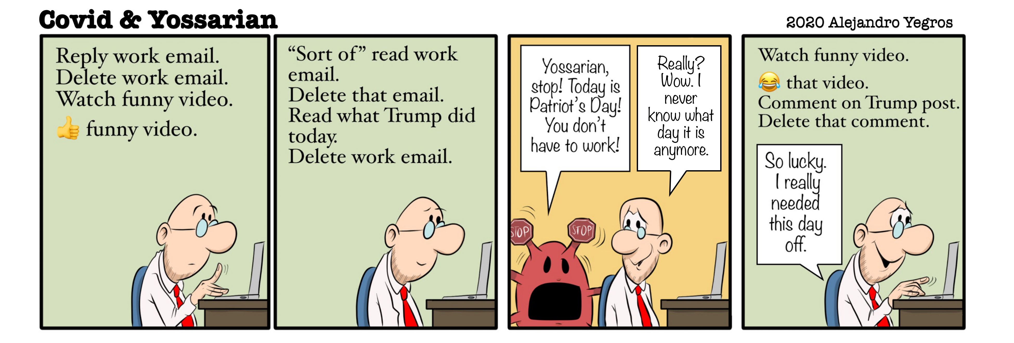 "Yossarian, stop! Today is Patriot's Day! You don't have to work!"